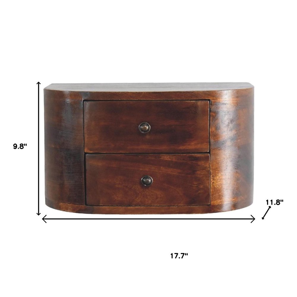 18" Brown Solid Wood Round Two Drawer Floating Nightstand