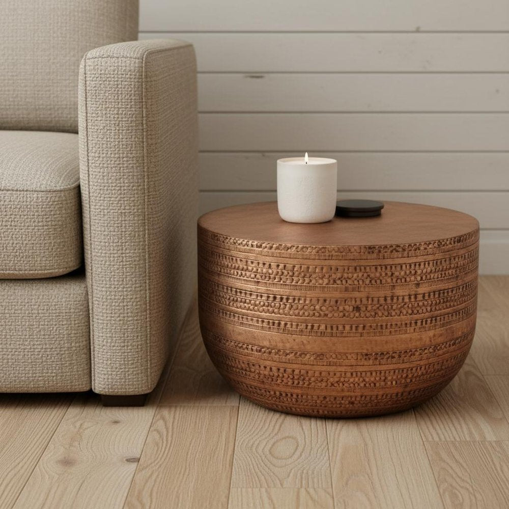 18" Copper Metal Round Drum End Table