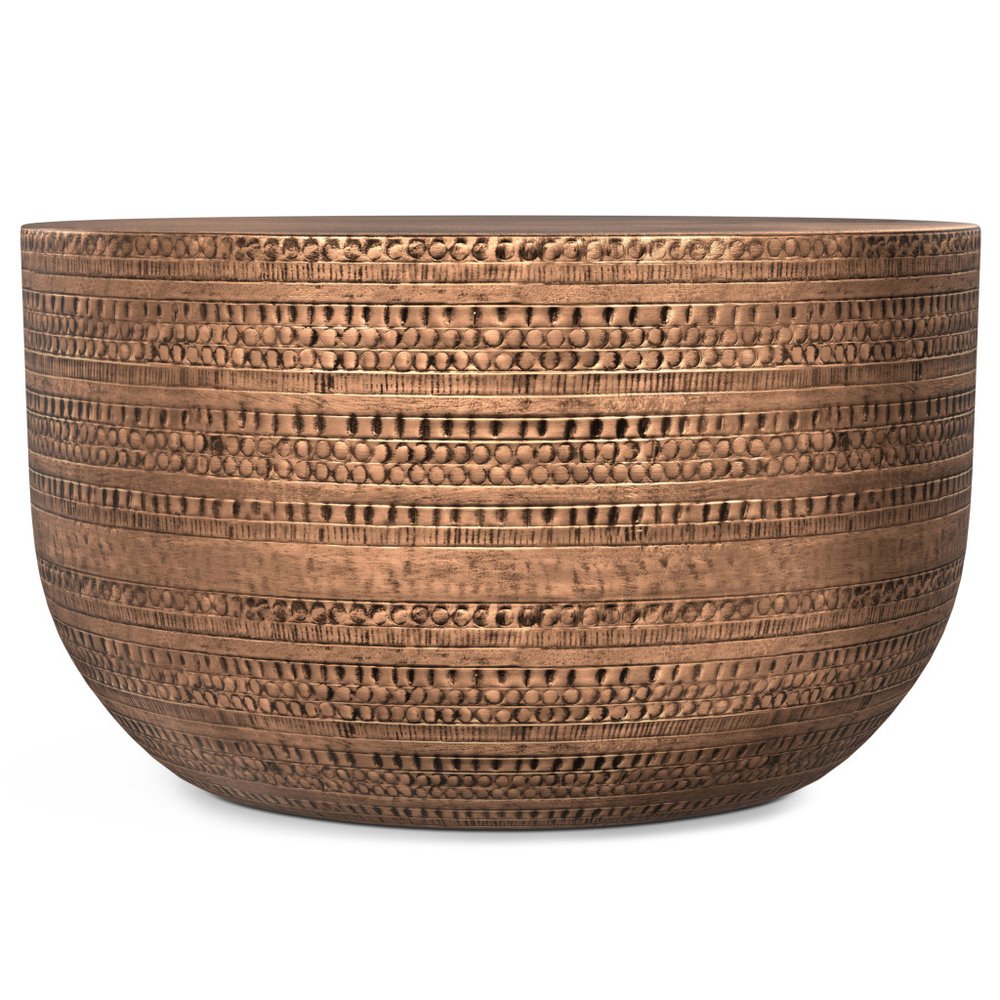 Show off your exquisite taste with this 18-inch copper metal round drum end table. Made of metal, the copper coloration... Read more