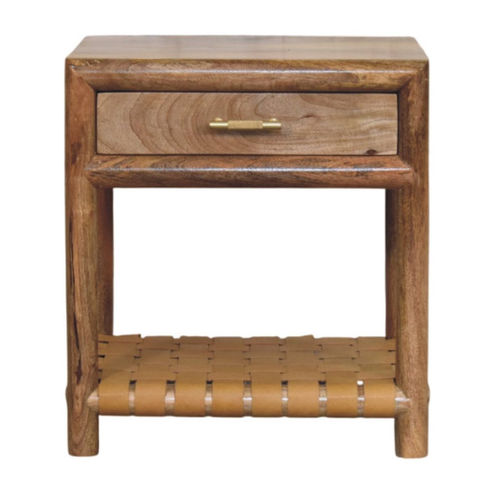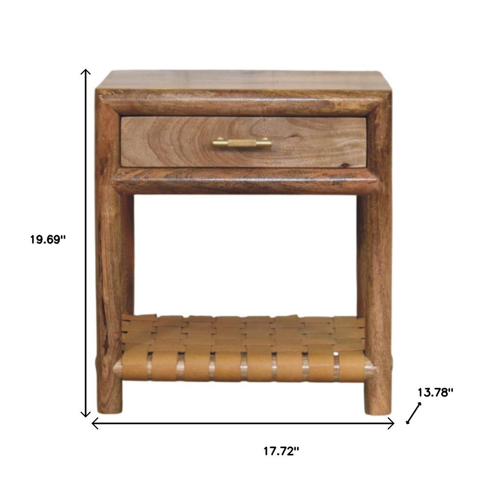 20" Light Brown Solid Wood One Drawer Nightstand With Leather Shelf