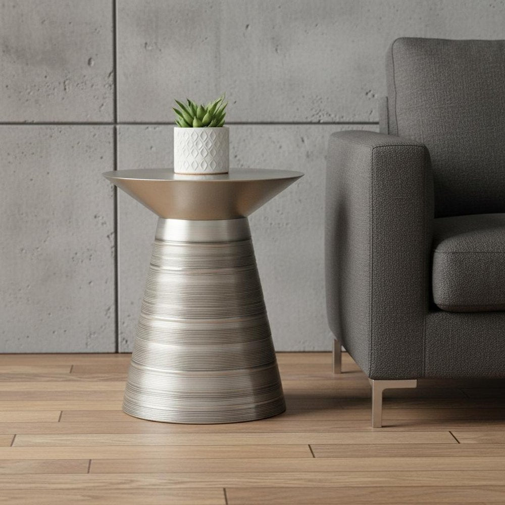 20" Silver Metal Round End Table