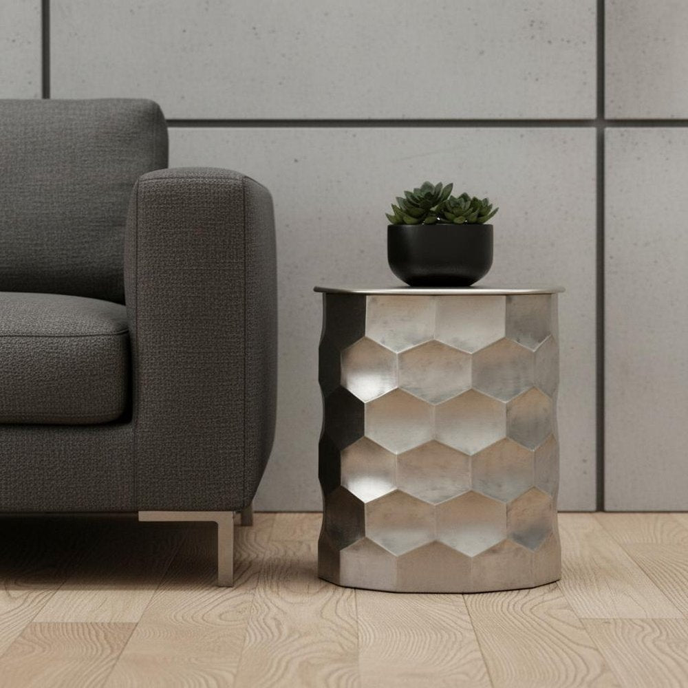 20" Silver Metal Round End Table