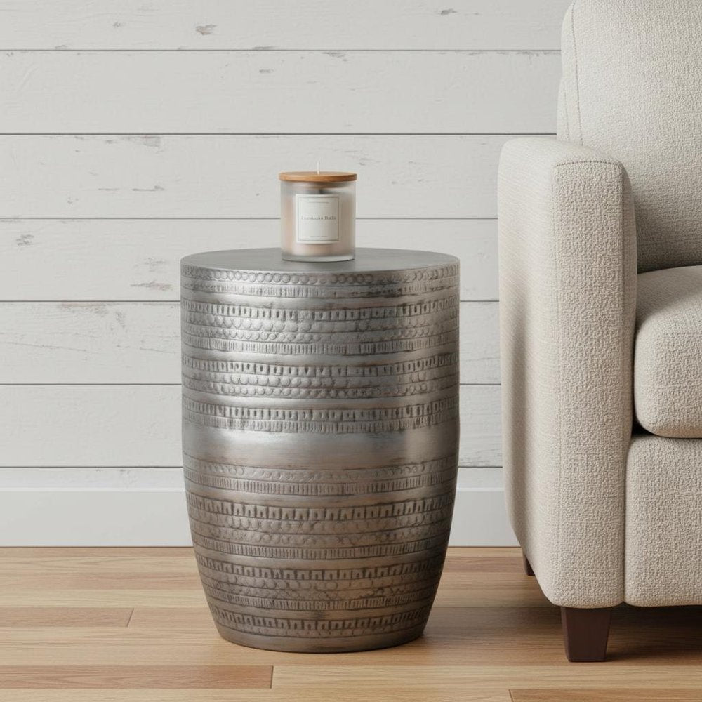 20" Silver Metal Round End Table
