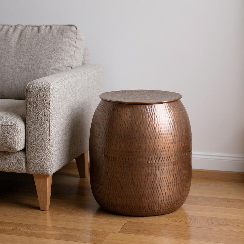 Distinctive in style the 21-inch copper metal round end table radiates a versatile charm. This table is made from metal... Read more