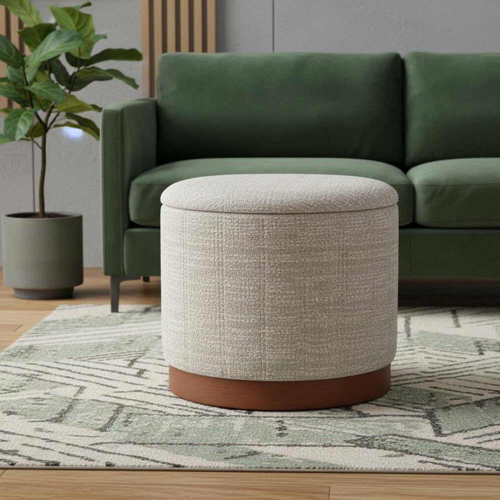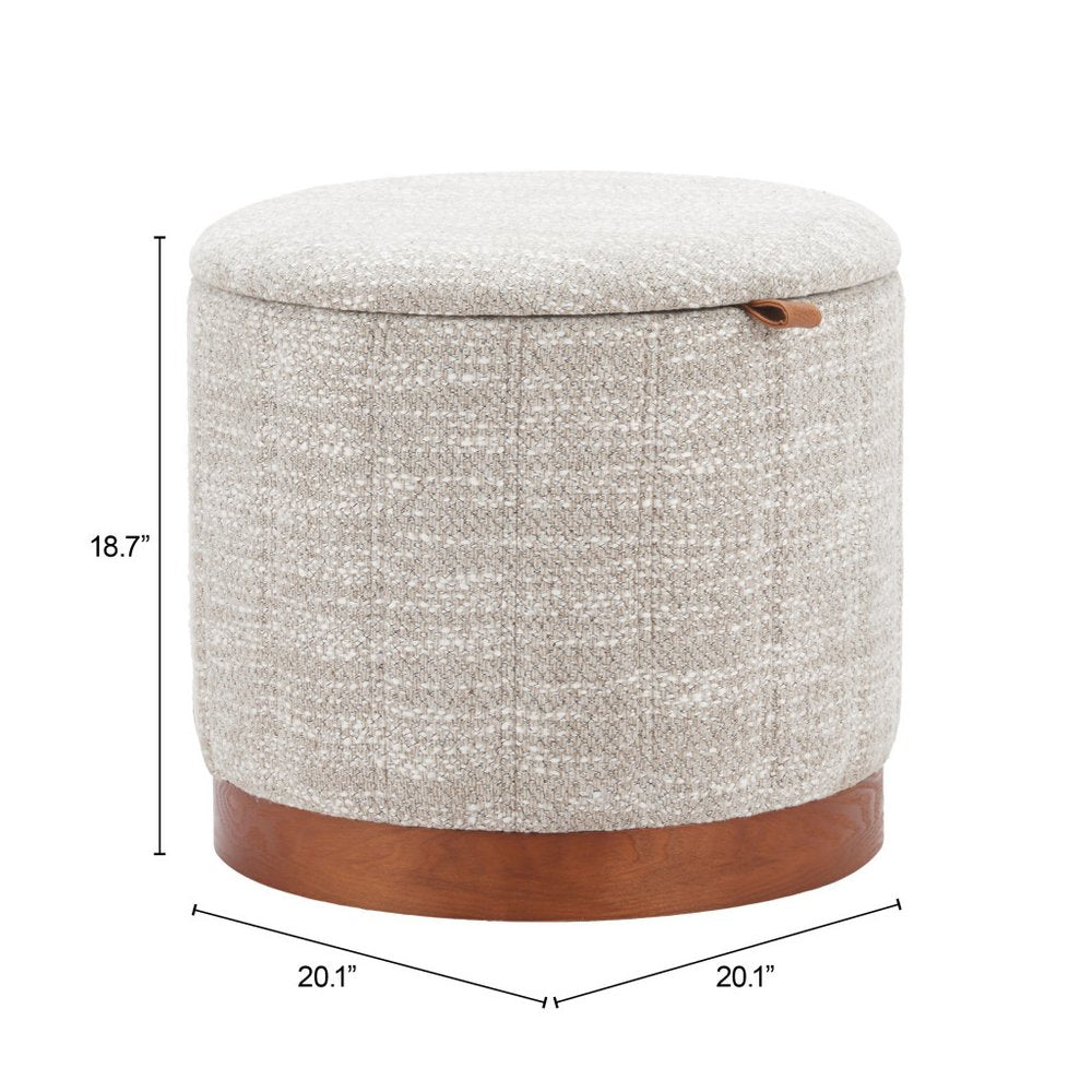 21" Gray and Brown Fabric Round Ottoman With Storage