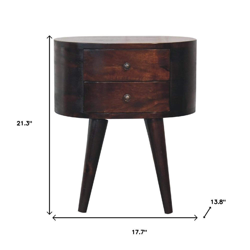 21" Walnut Solid Wood Oval Two Drawer Nightstand