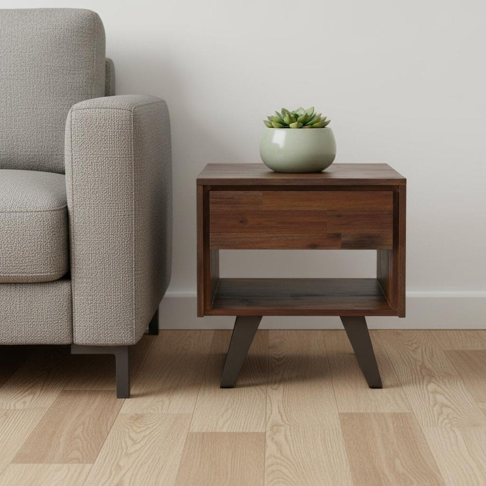 22" Brown Metal Square End Table