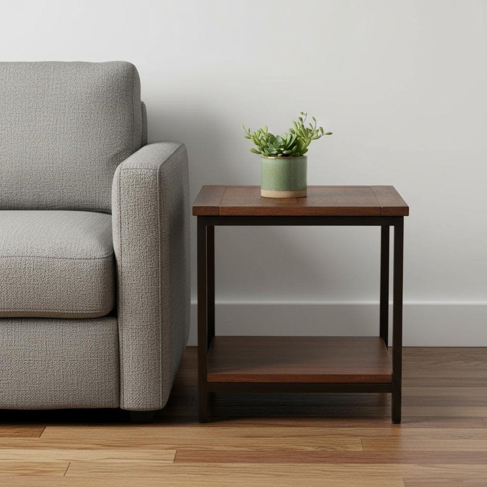 22" Brown Metal Square End Table