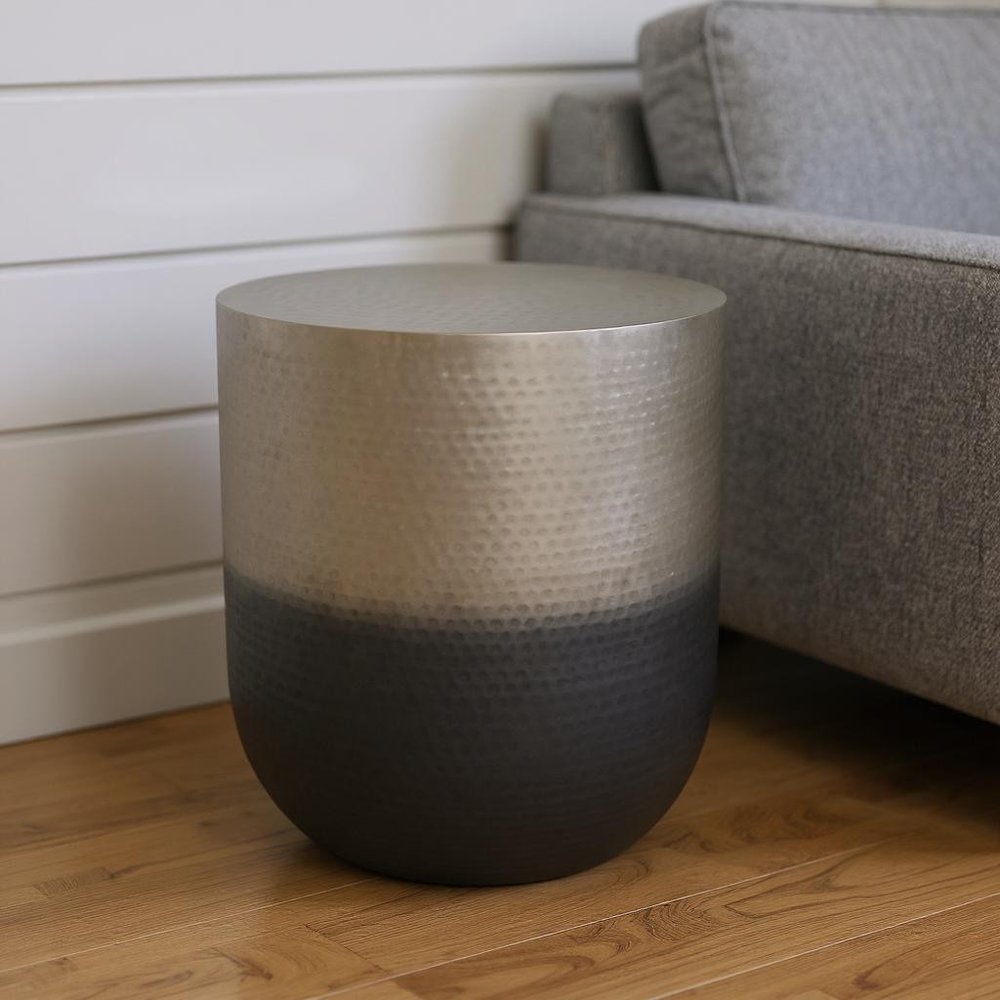 22" Silver Metal Round End Table