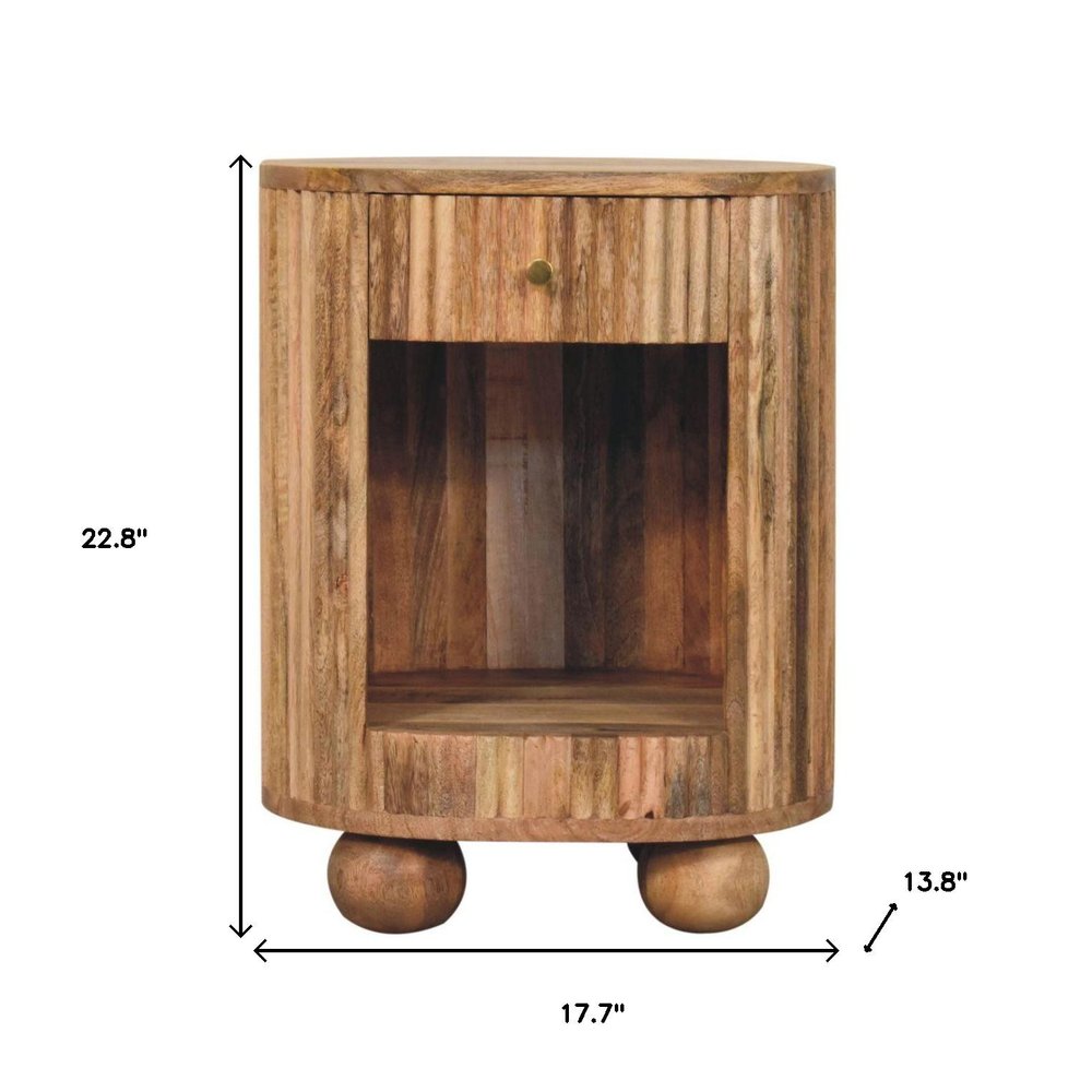 23" Natural Solid Wood Oval Ribbed Texture One Drawer Nightstand