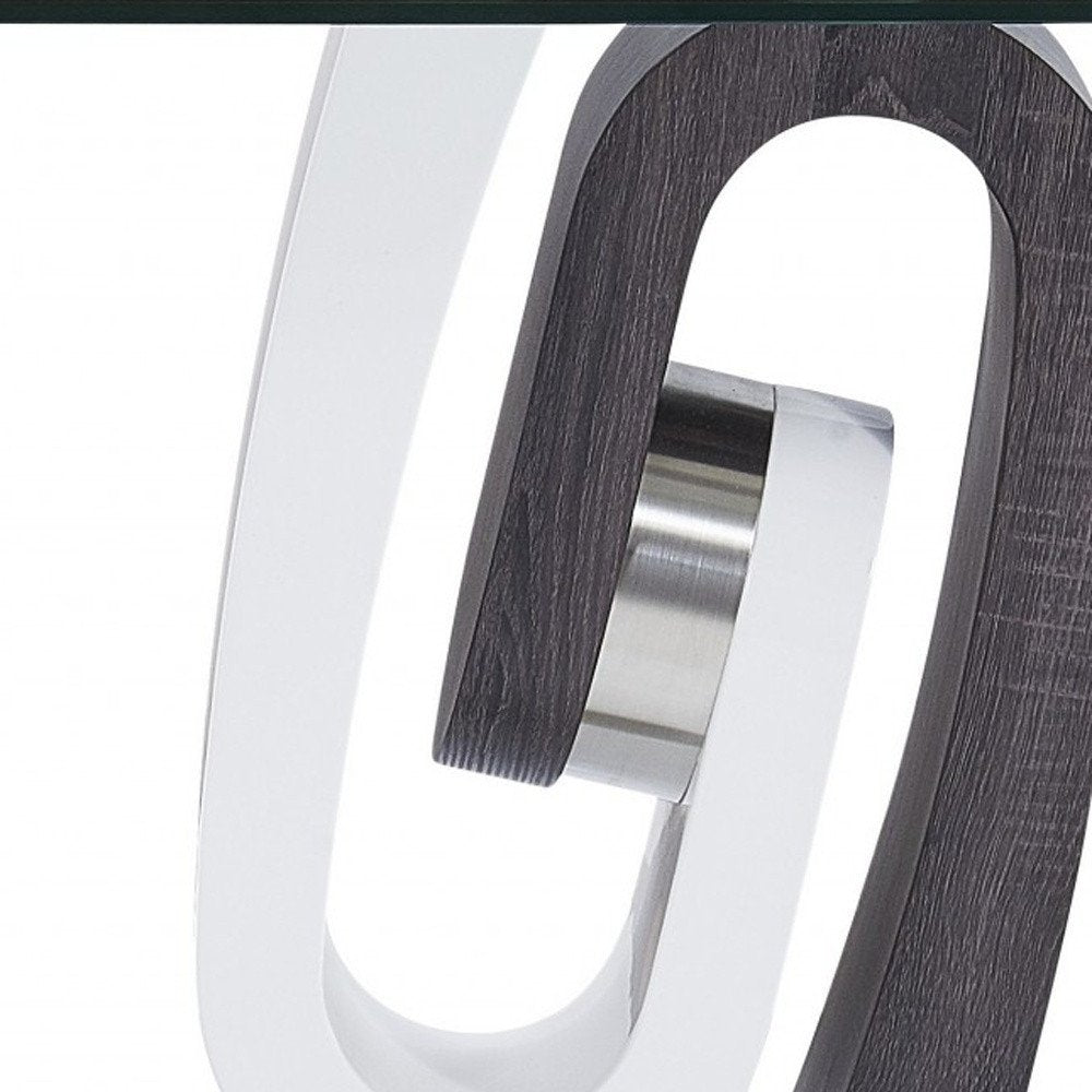 23" White Gray And Clear Glass and Wood Square Pedestal End Table