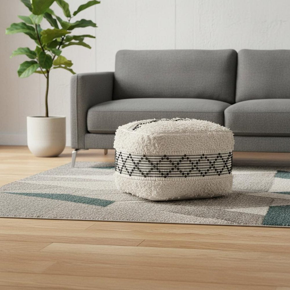 Optimize your space and add some charm to your room with the 24-inch black cotton round ottoman. The upholstery top... Read more