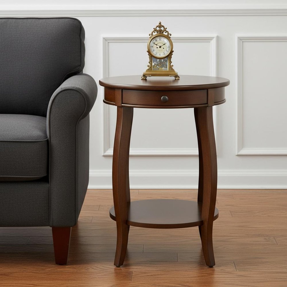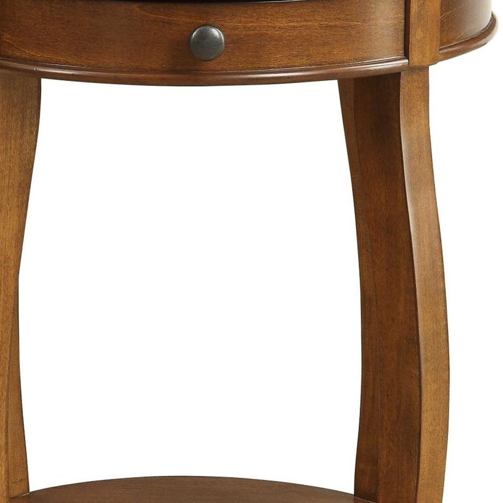 24" Brown Solid Wood Round End Table With Shelf