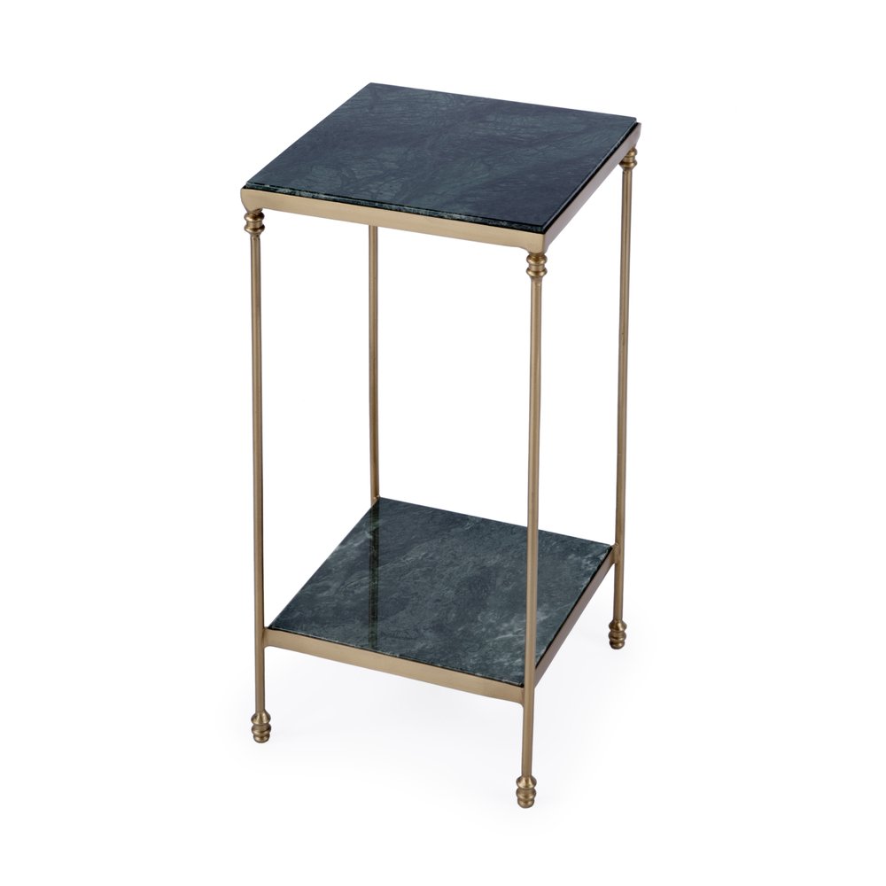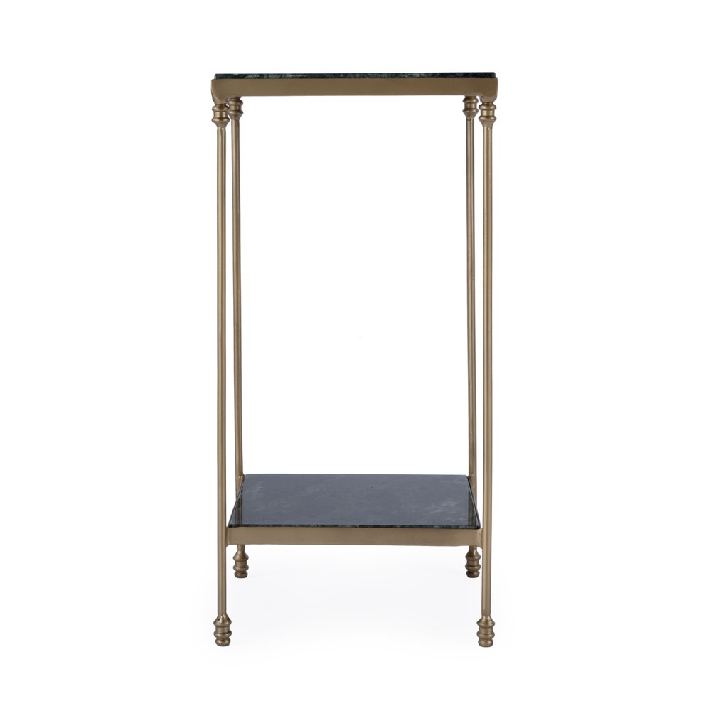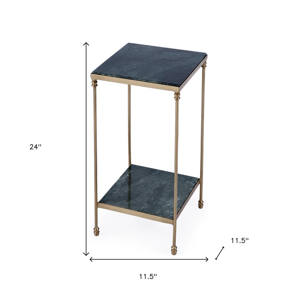 24" Green and Gold Marble and Iron Square End Table With Shelf