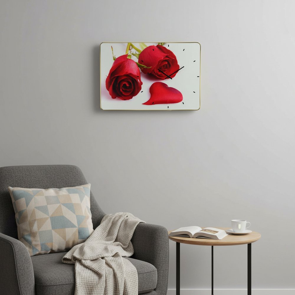 This 24-inch red white and gold solid wood and acrylic silent roses floral wall clock includes three moving hands on... Read more