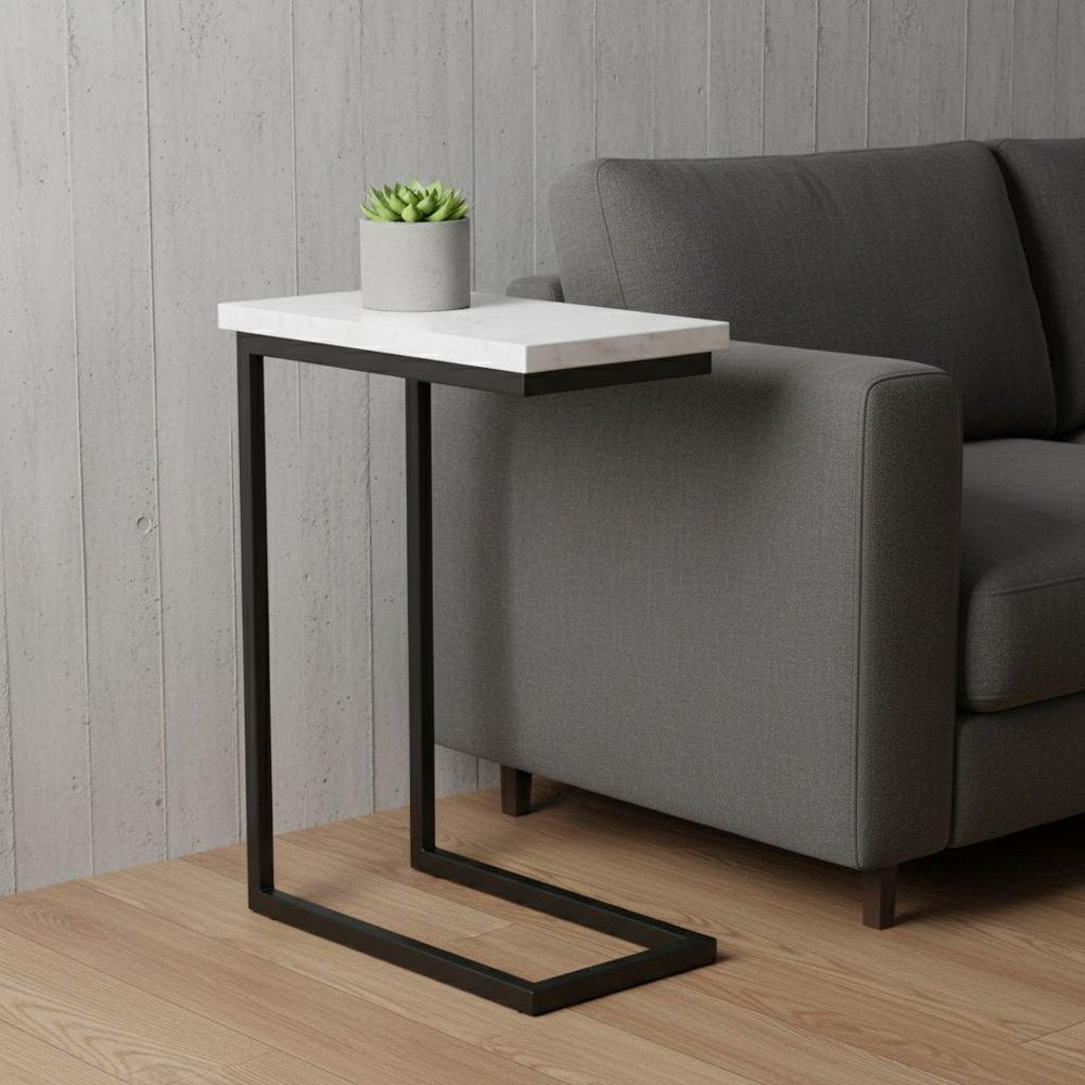 24" White Marble End Table And Trunk Storage