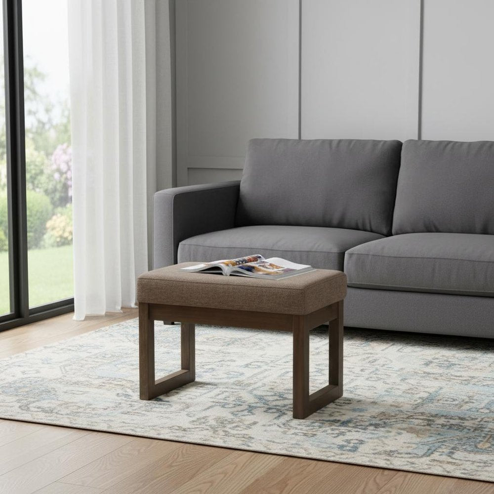 27" Brown Fabric Footstool