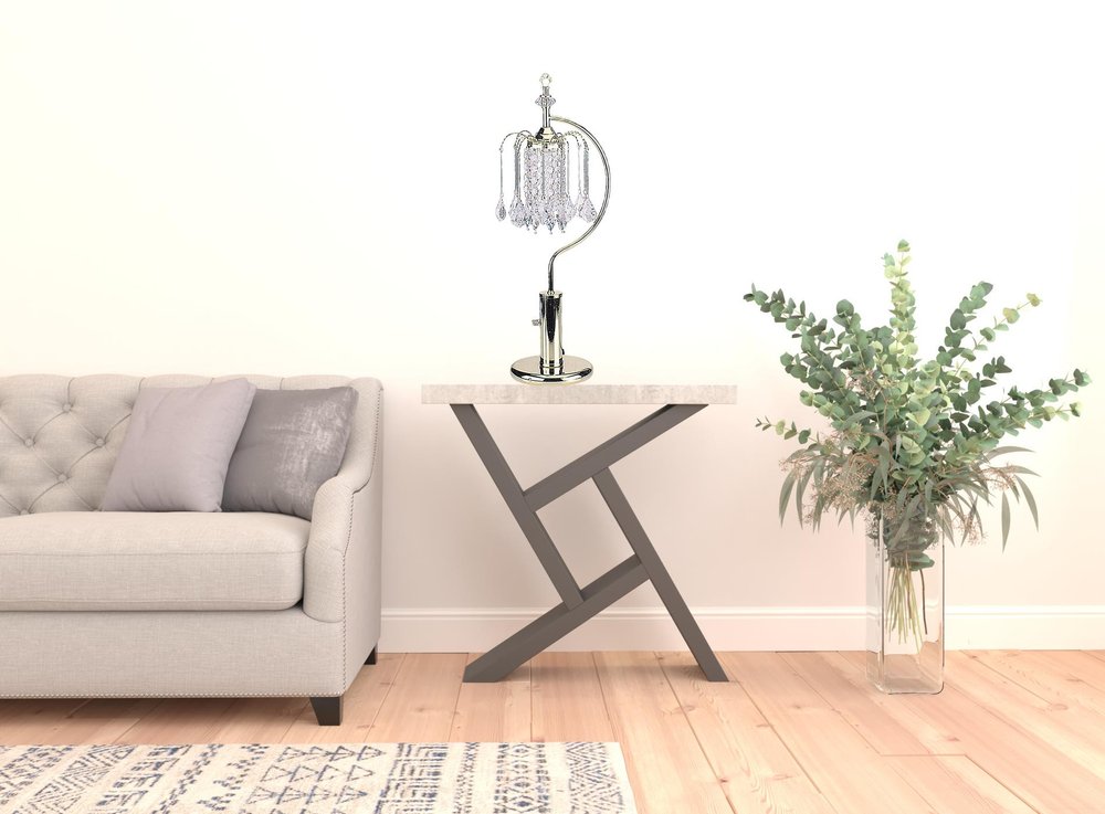 Embrace the good life with this hard working and stylish 27" gold metal chandelier faux crystal table lamp. A gorgeous... Read more
