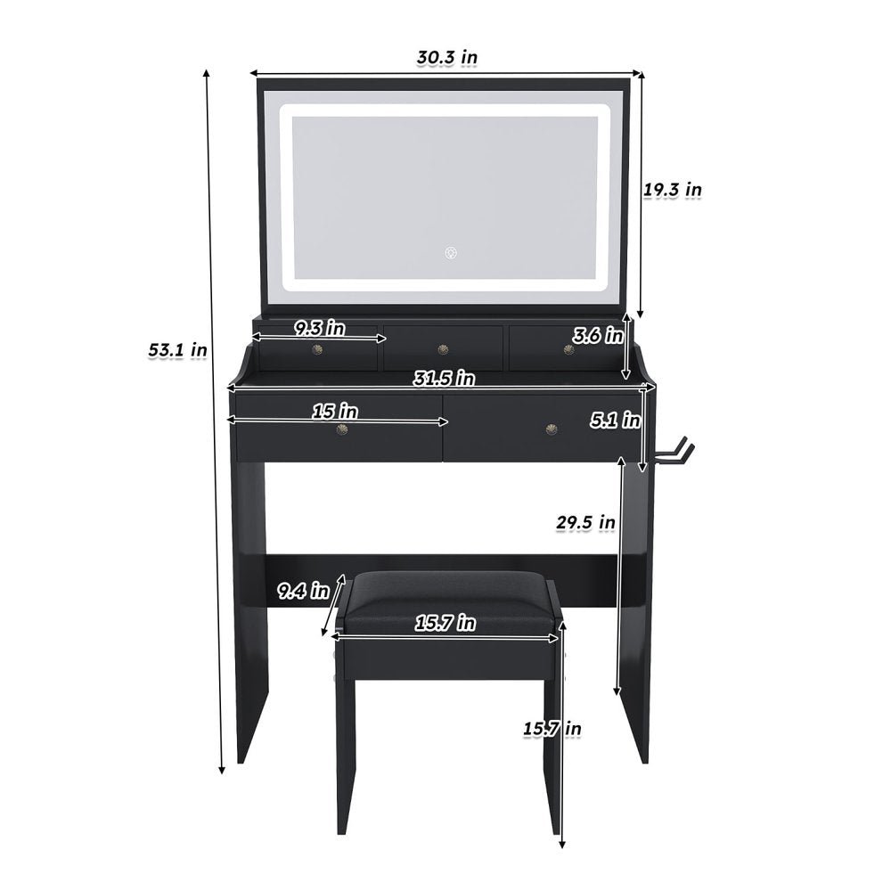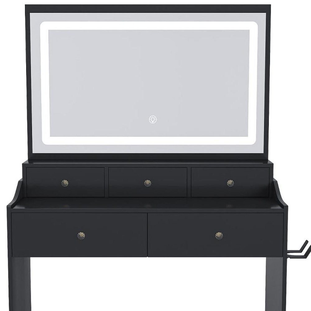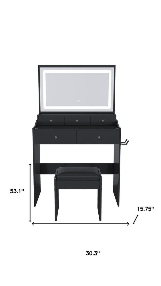 30" Black Wood Lighted Five Drawer Dresser