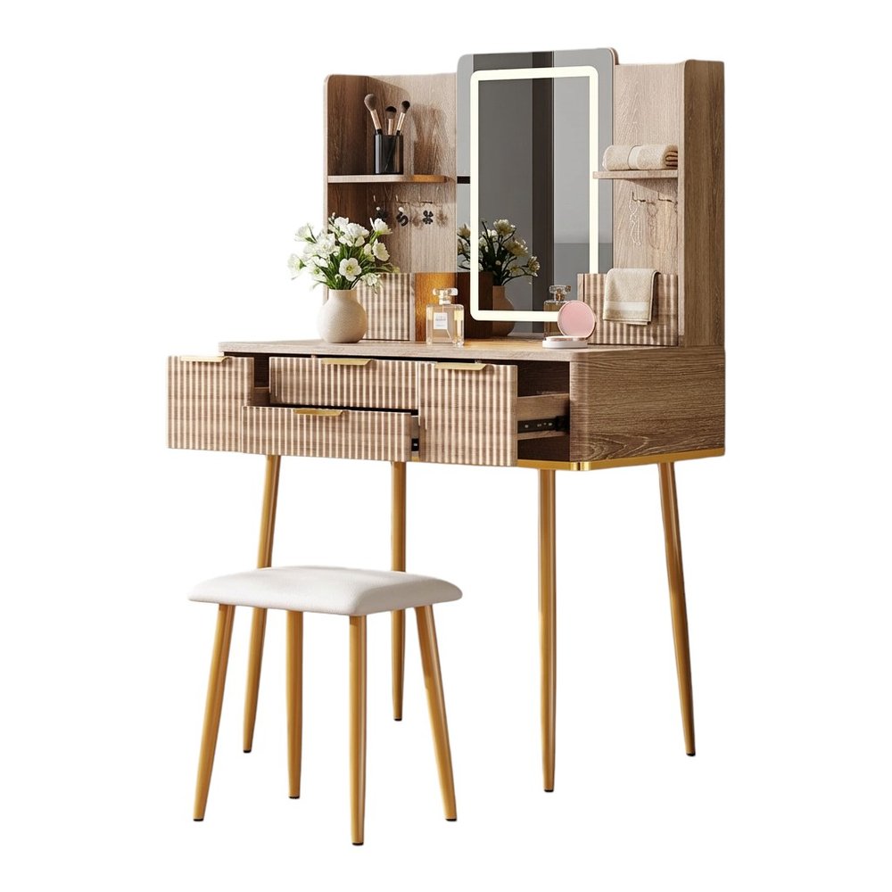 Make your room functional and visually enticing with this masterful 30-inch brown wood lighted four drawer dresser. This vertical standard...