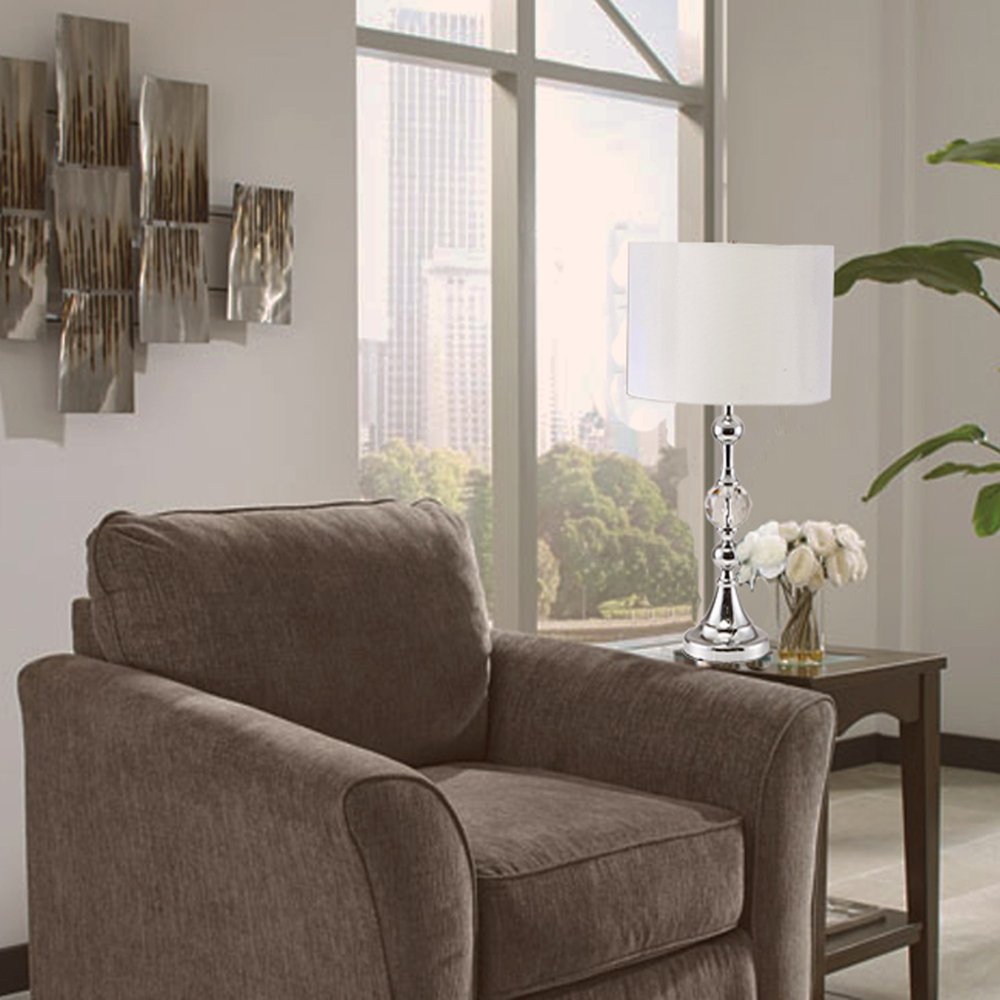 Bring of level of elegance and charm to your space with this good looking 30" silver metal table lamp with... Read more