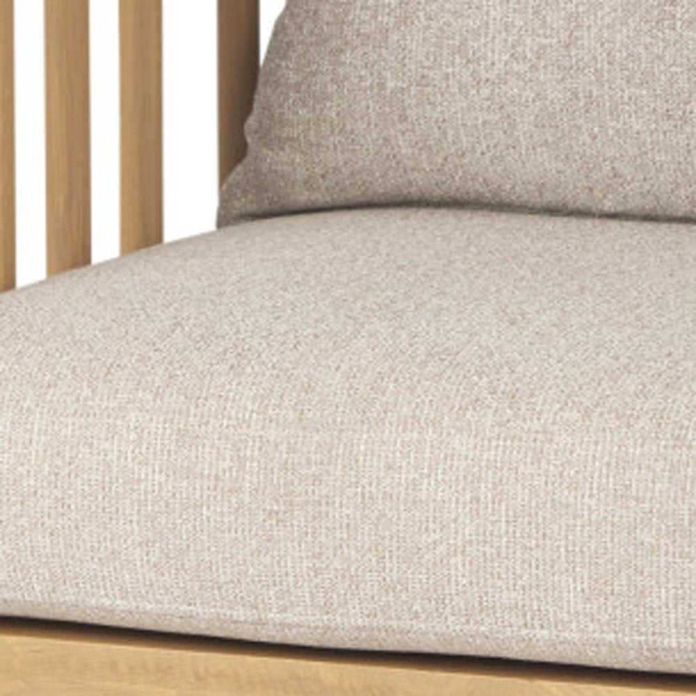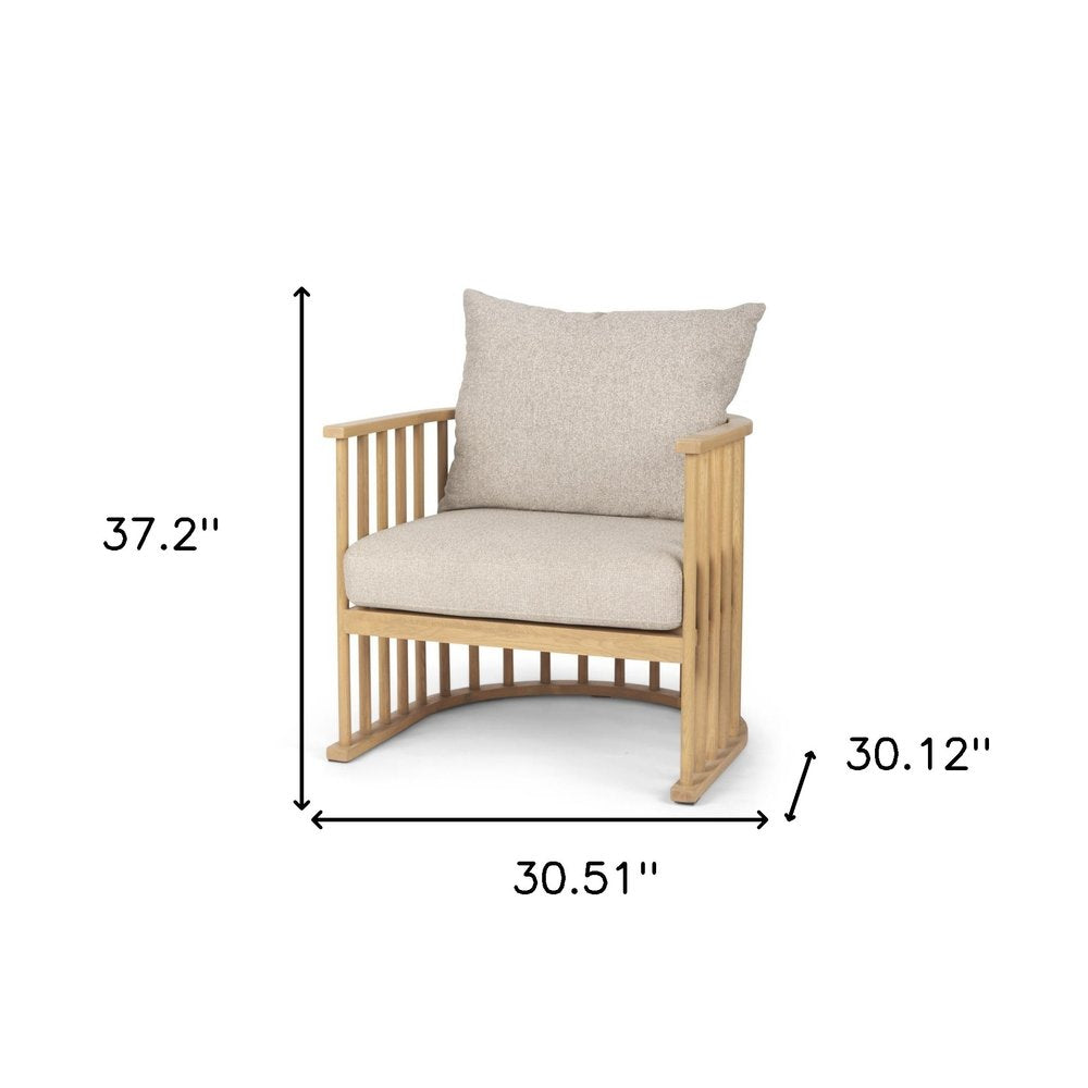 31" Beige and Natural Upholstery and Solid Wood Barrel Chair