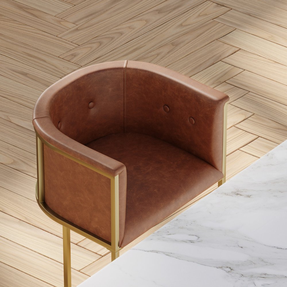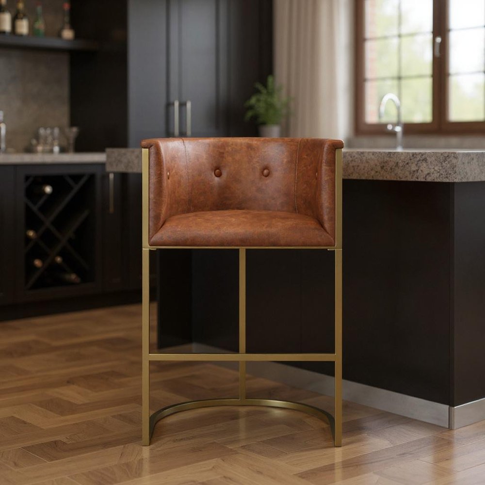 Comfortable enough to sit in for awhile, this 31-inch brown and gold wood fabric and steel low back bar height... Read more
