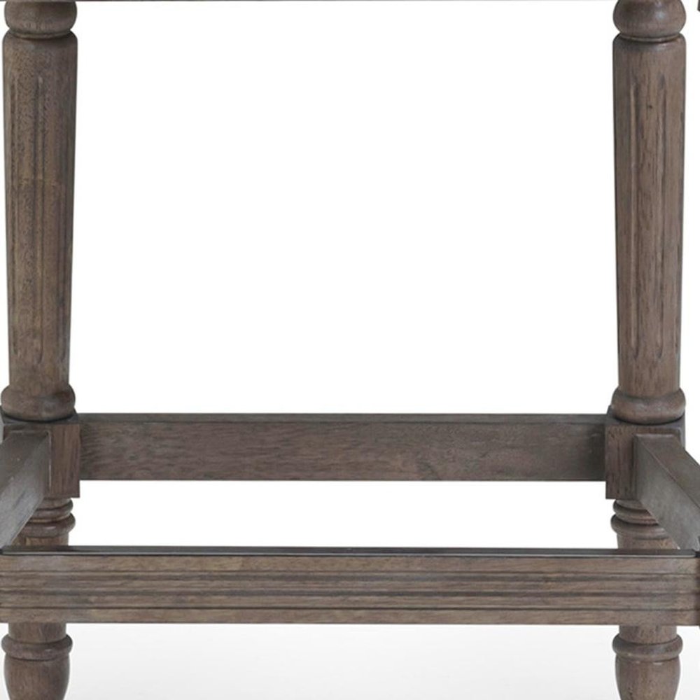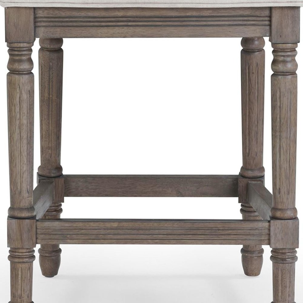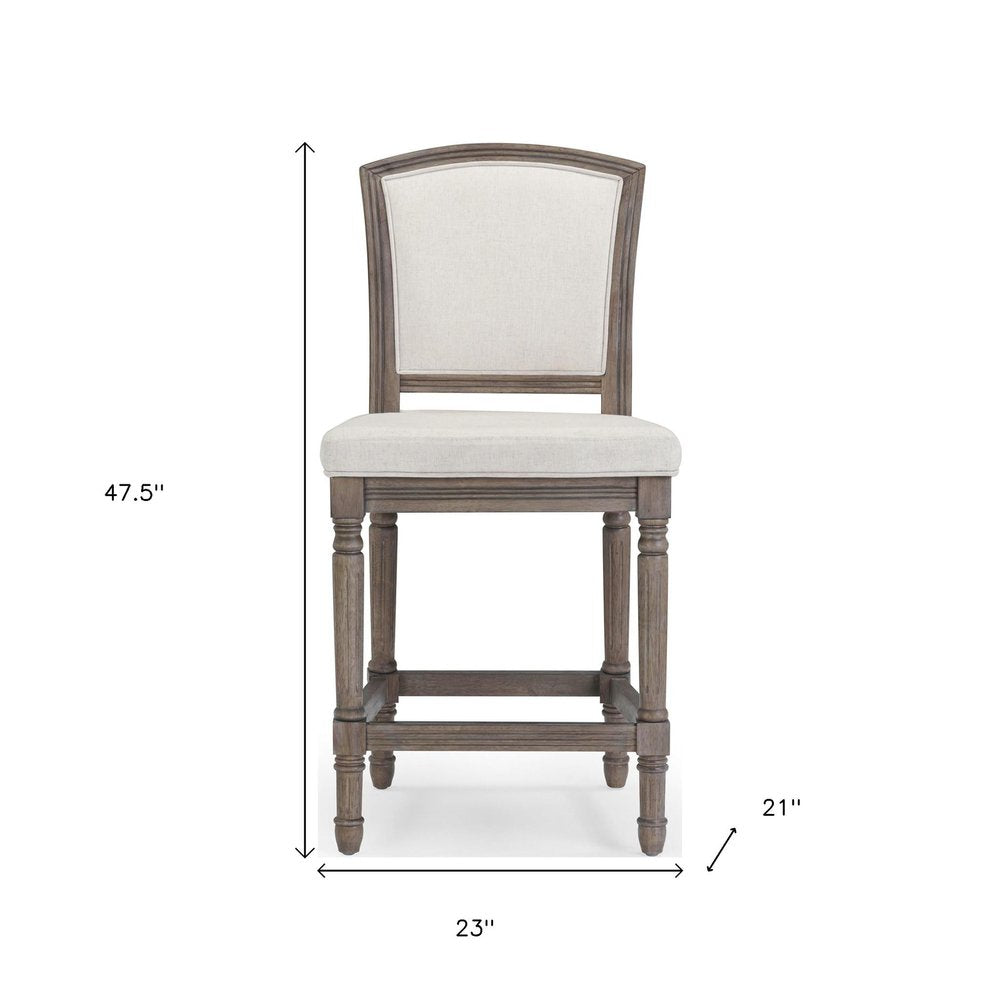 31" Gray Fabric and Solid Wood Bar Height Bar Chair