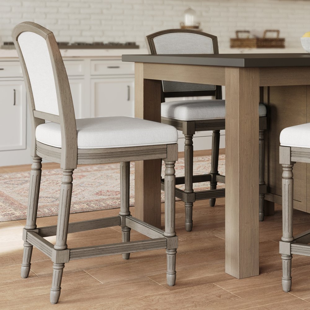 Comfortable enough to sit in for awhile, this 31-inch gray fabric and solid wood bar height bar chair will transcend... Read more