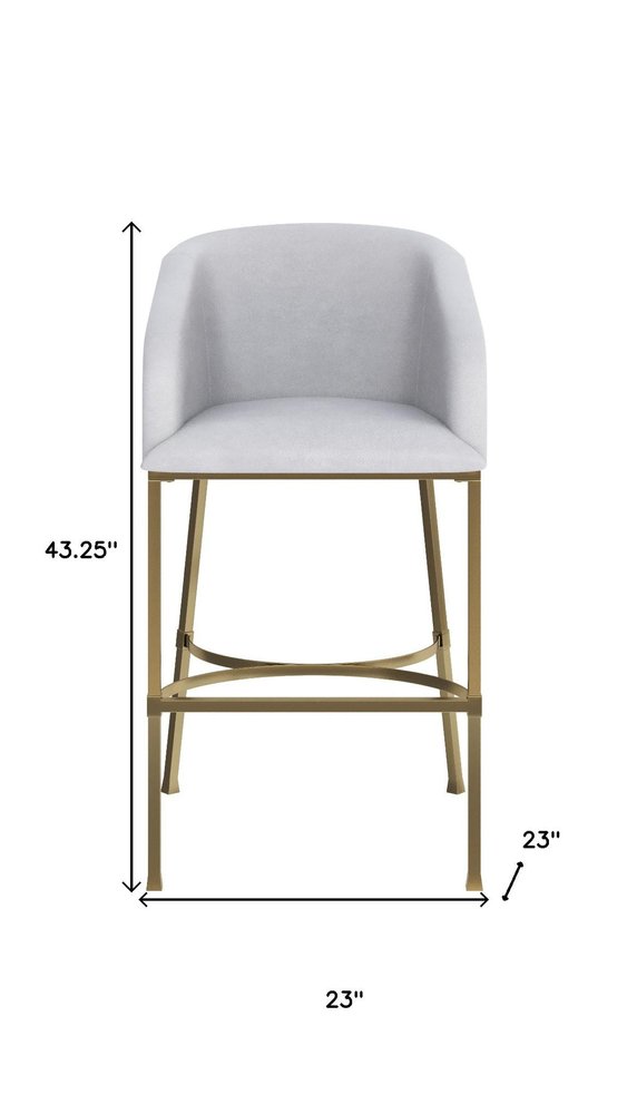 31" White and Gold Wood Fabric and Steel Low Back Bar Height Bar Chair