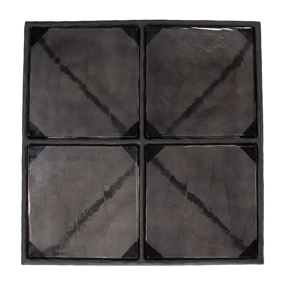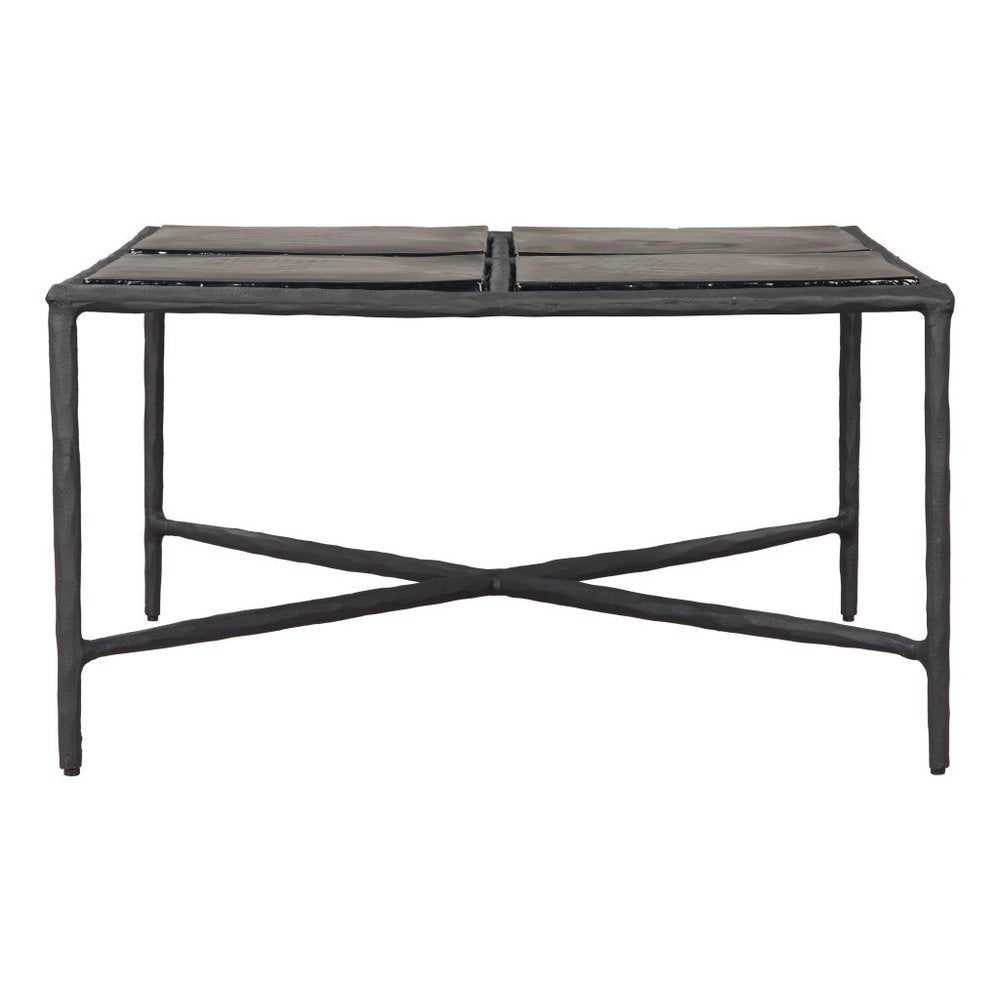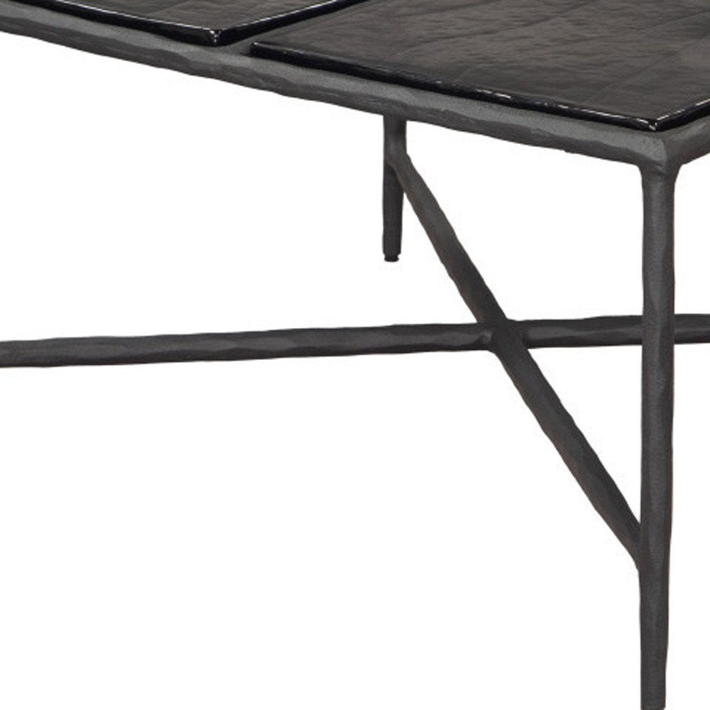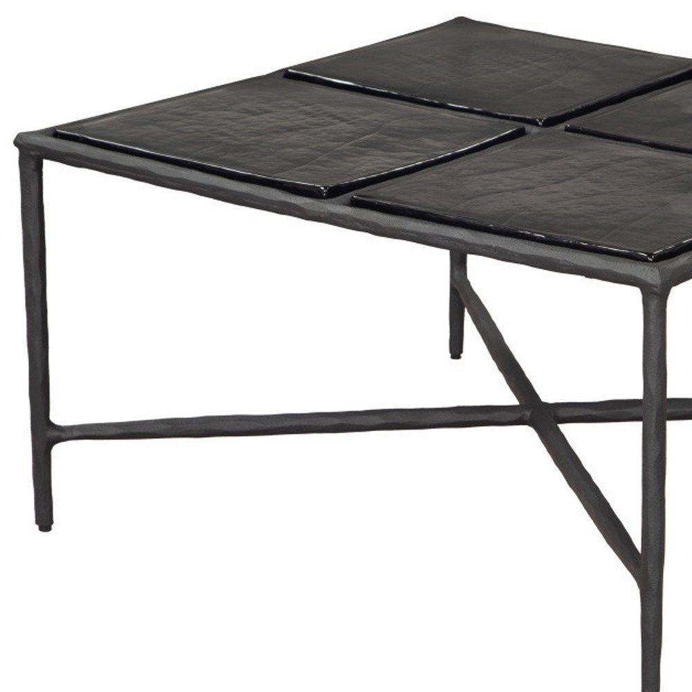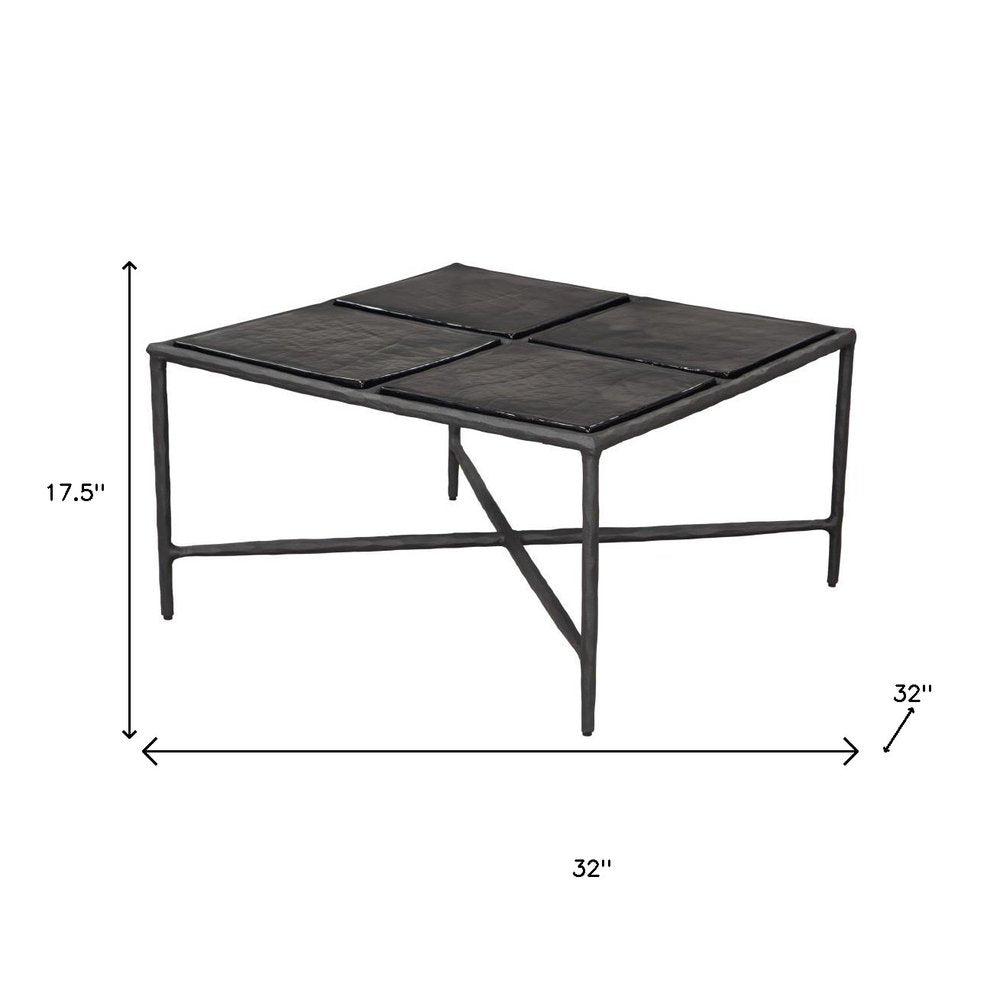 32" Black Glass and Aluminum Square Pedestal Coffee Table