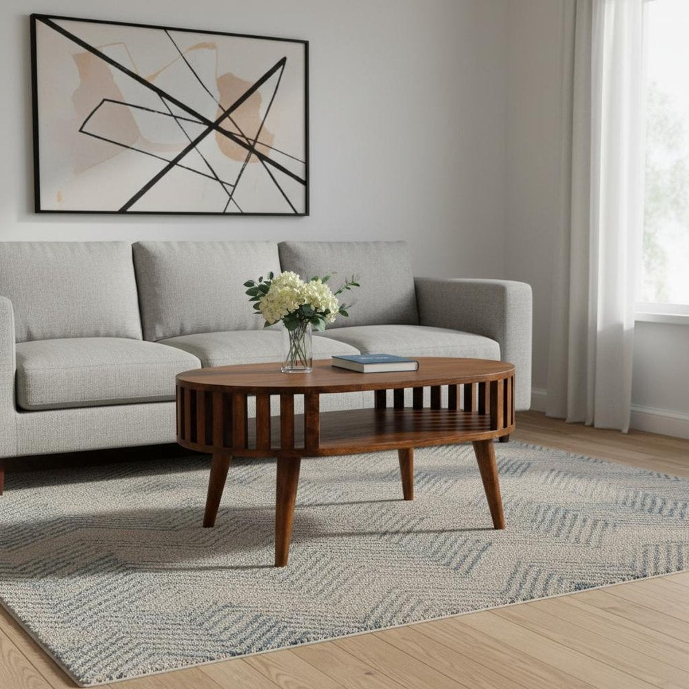 Add handsome, fashionable design to your living space with this 32-inch chestnut solid wood oval coffee table with shelf. This... Read more