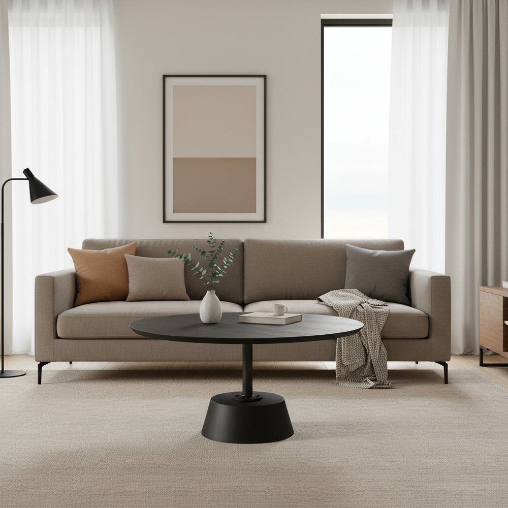 32" Dark Brown and Black Solid Wood and Iron Round Pedestal Coffee Table
