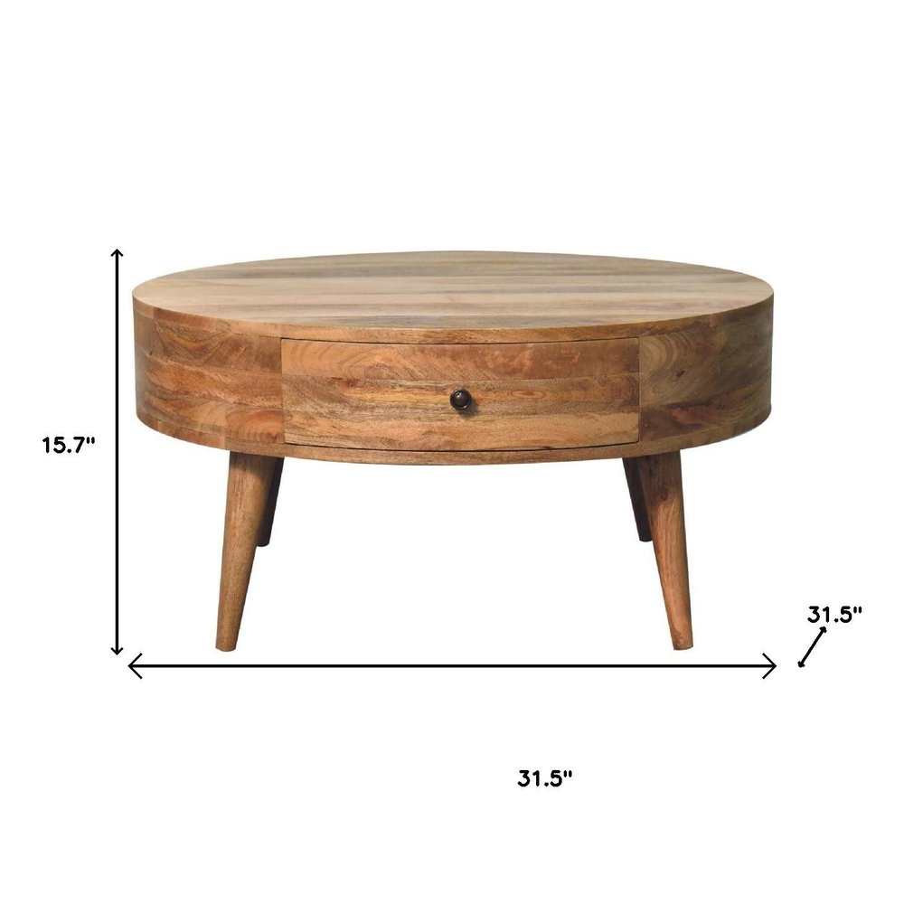 32" Oak Solid Wood Round Coffee Table With Drawer