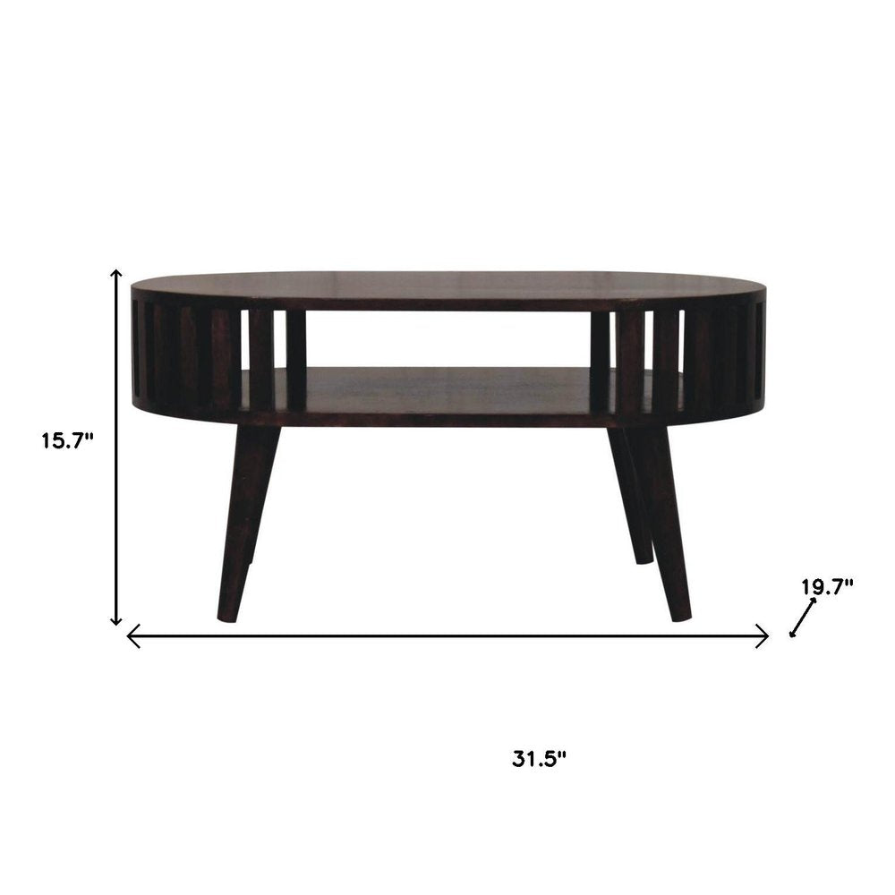 32" Walnut Solid Wood Oval Coffee Table With Shelf