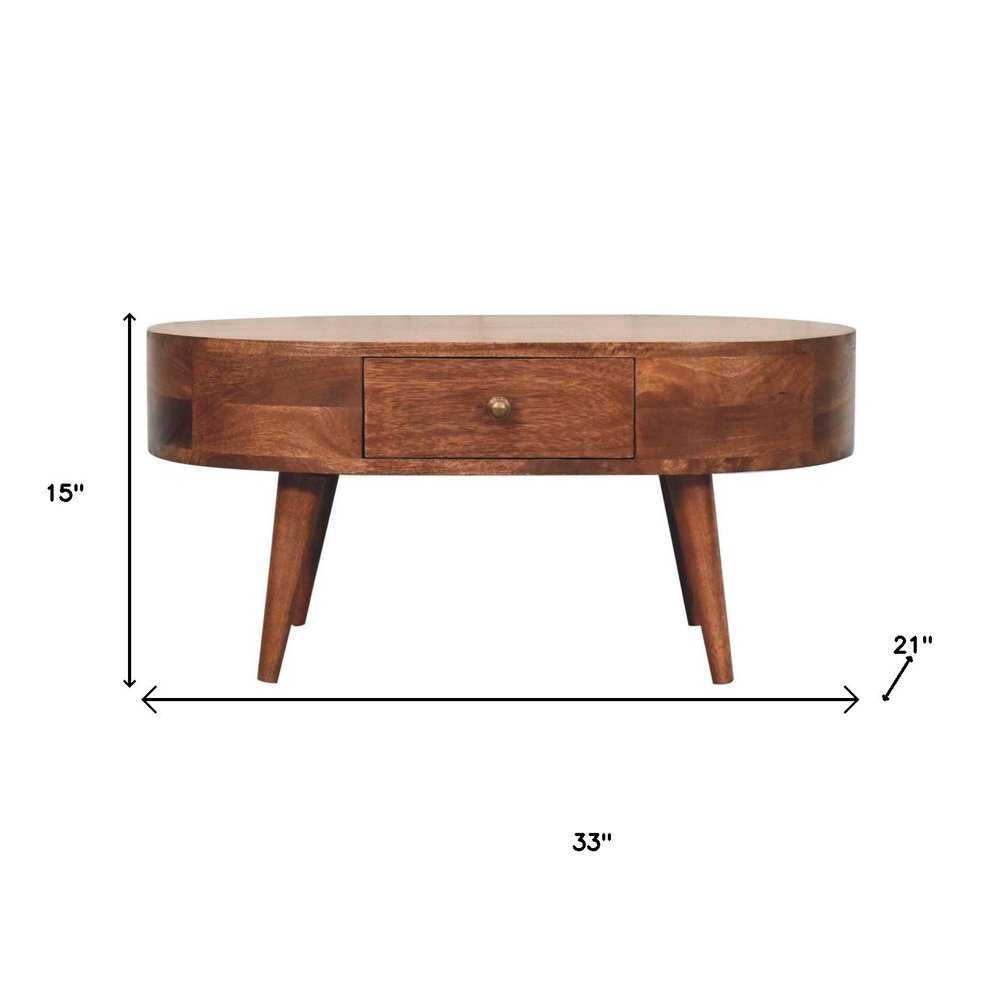 33" Natural Solid Wood Oval Coffee Table With Drawer