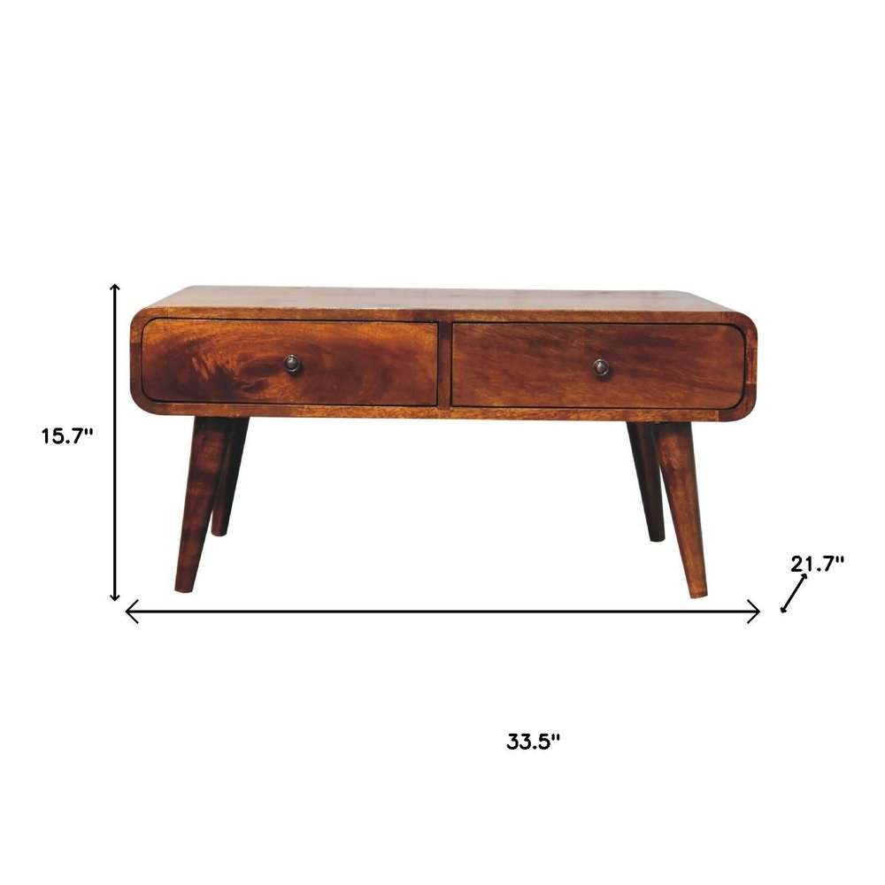 34" Chestnut Solid Wood Coffee Table With Four Drawers