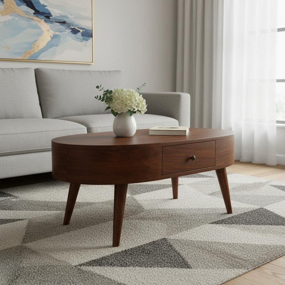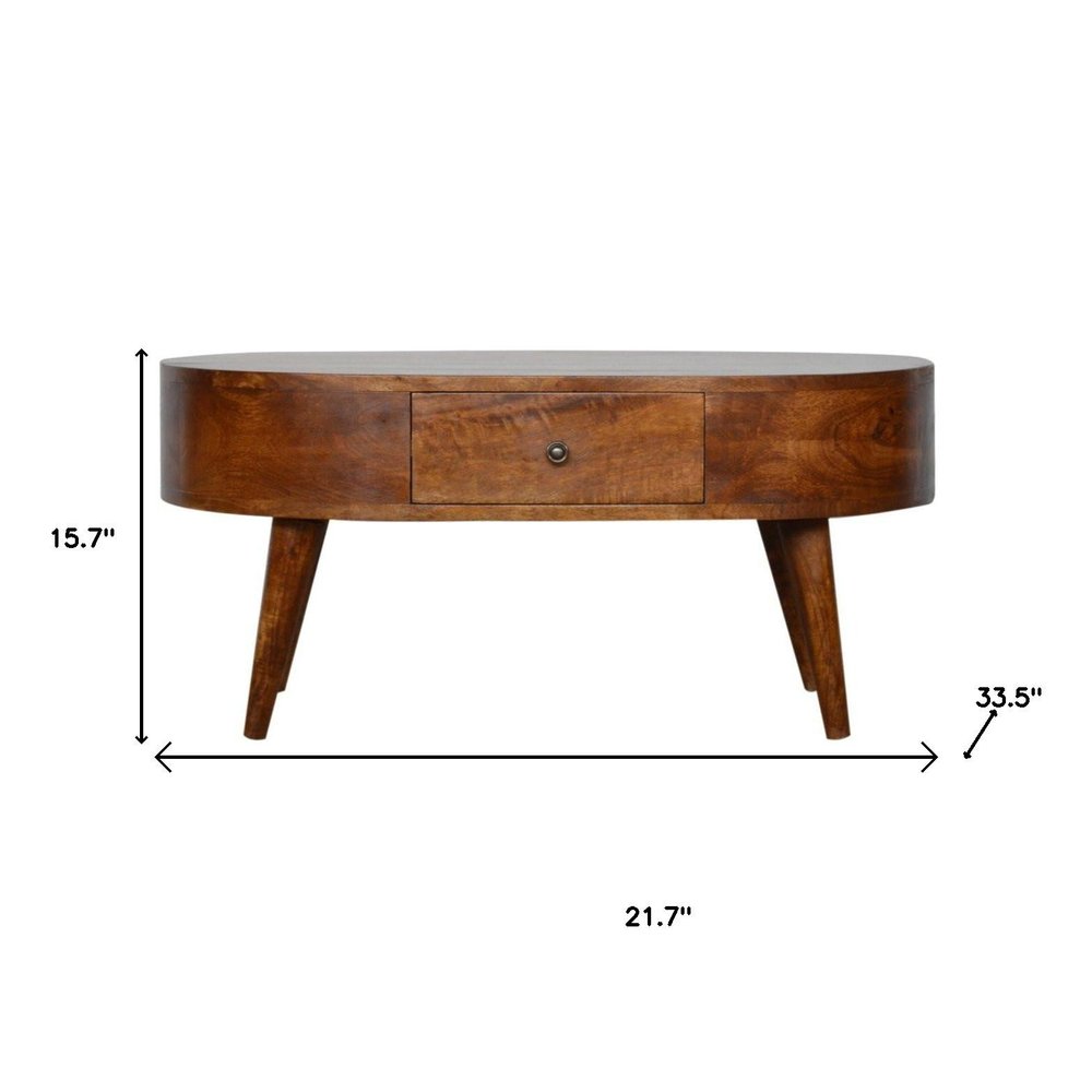 34" Chestnut Solid Wood Oval Coffee Table With Two Drawers