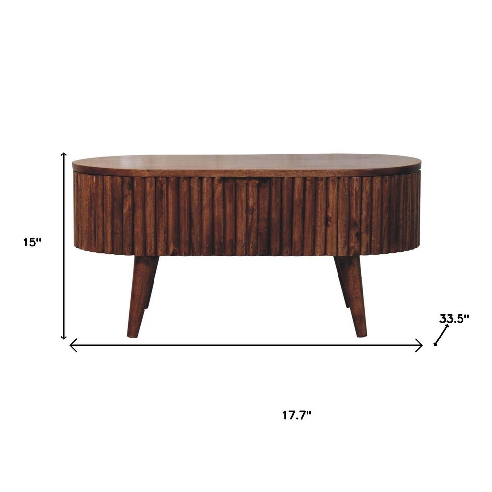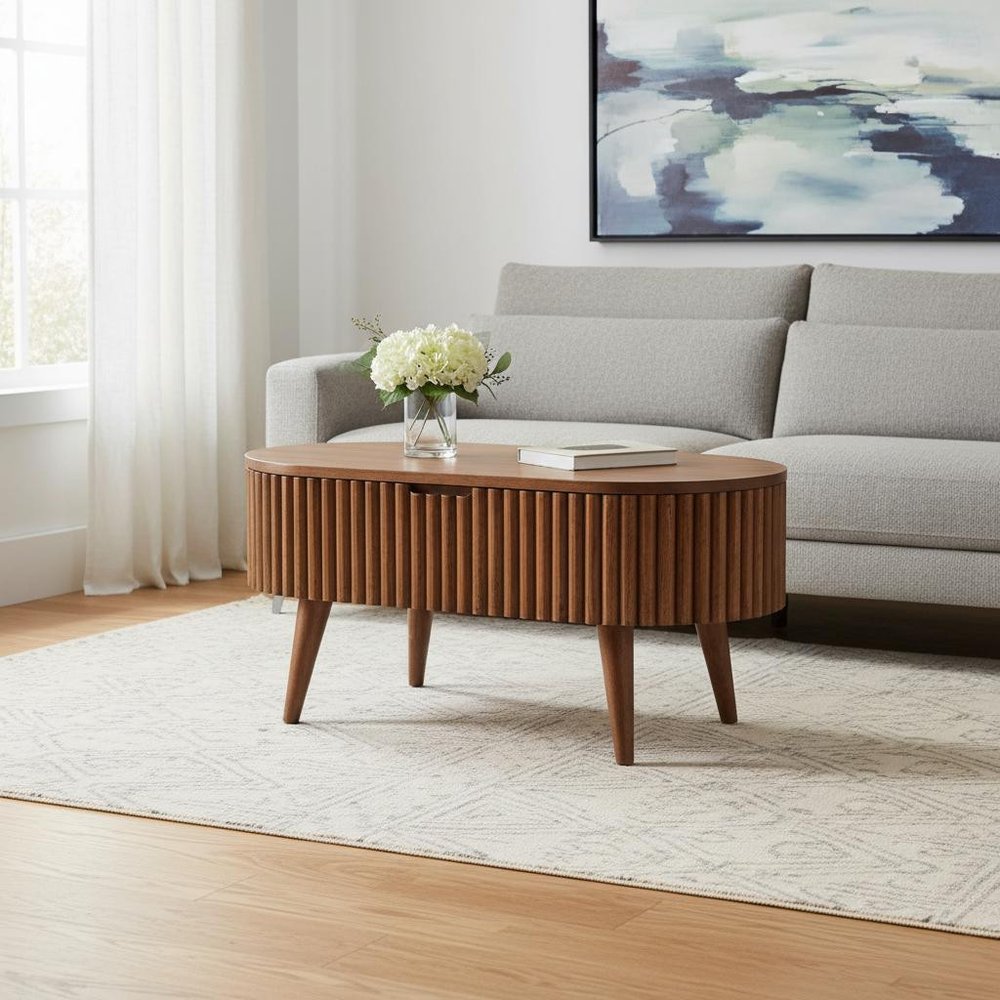 34" Natural Solid Wood Oval Lift Top Coffee Table With Drawer