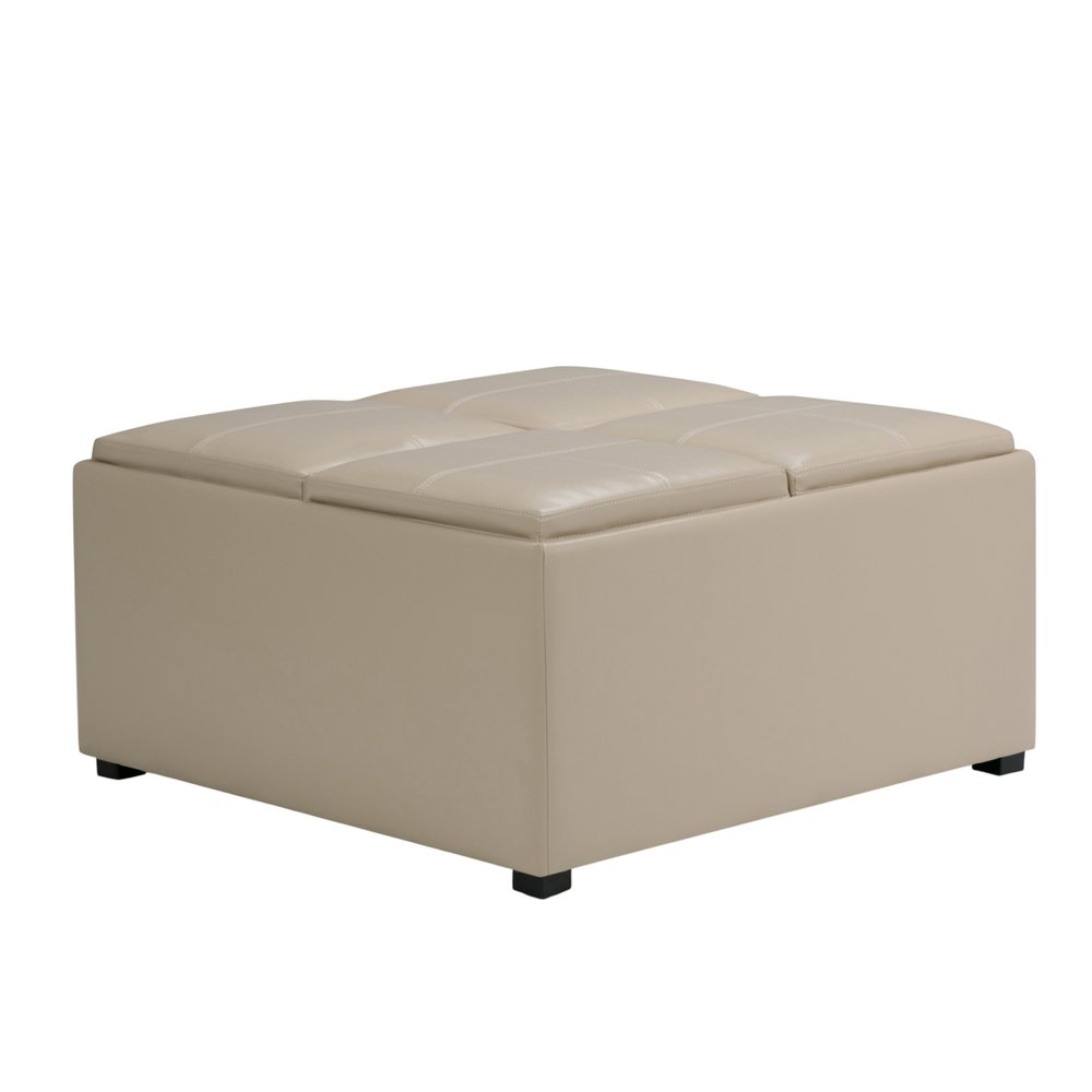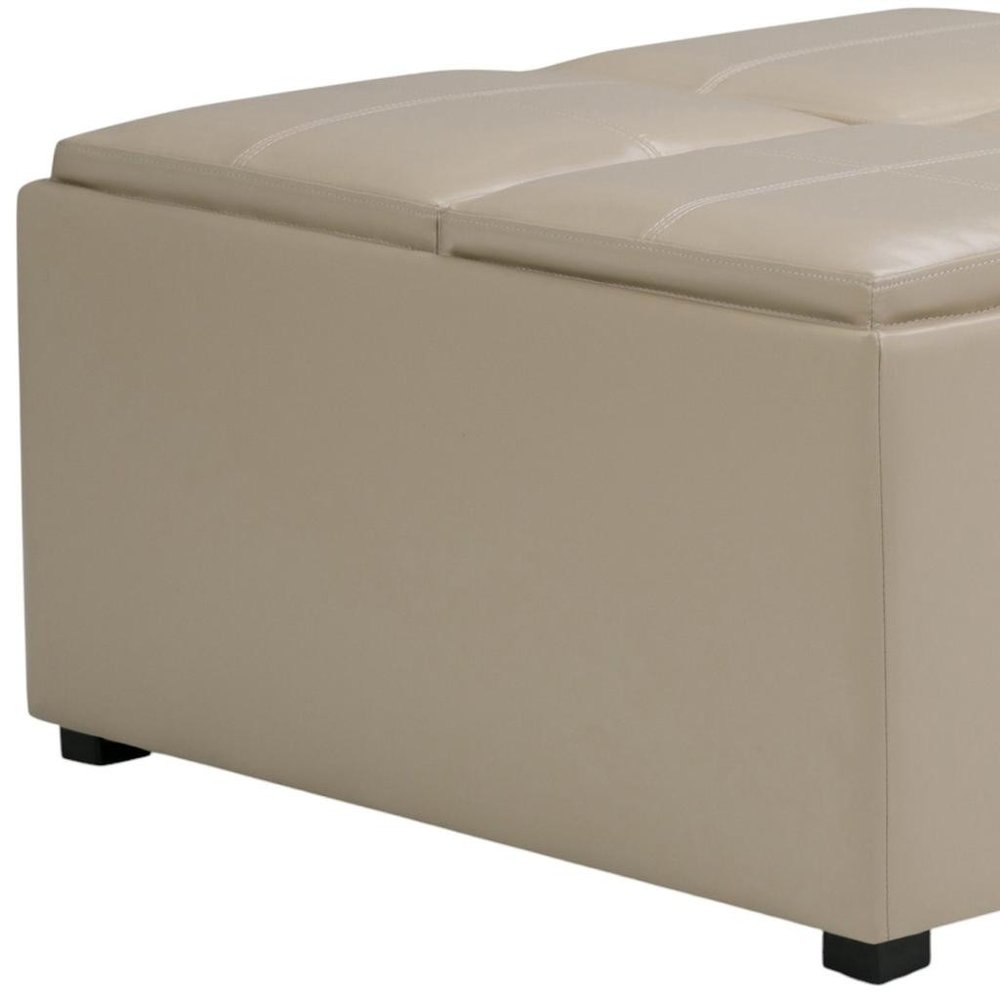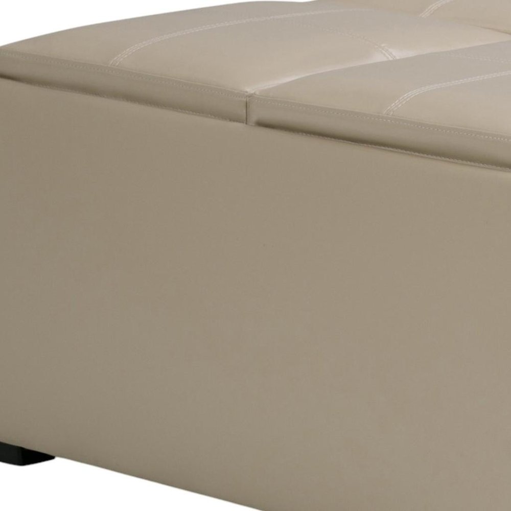 35" Cream and Dark Brown Leather Cocktail Ottoman With Storage