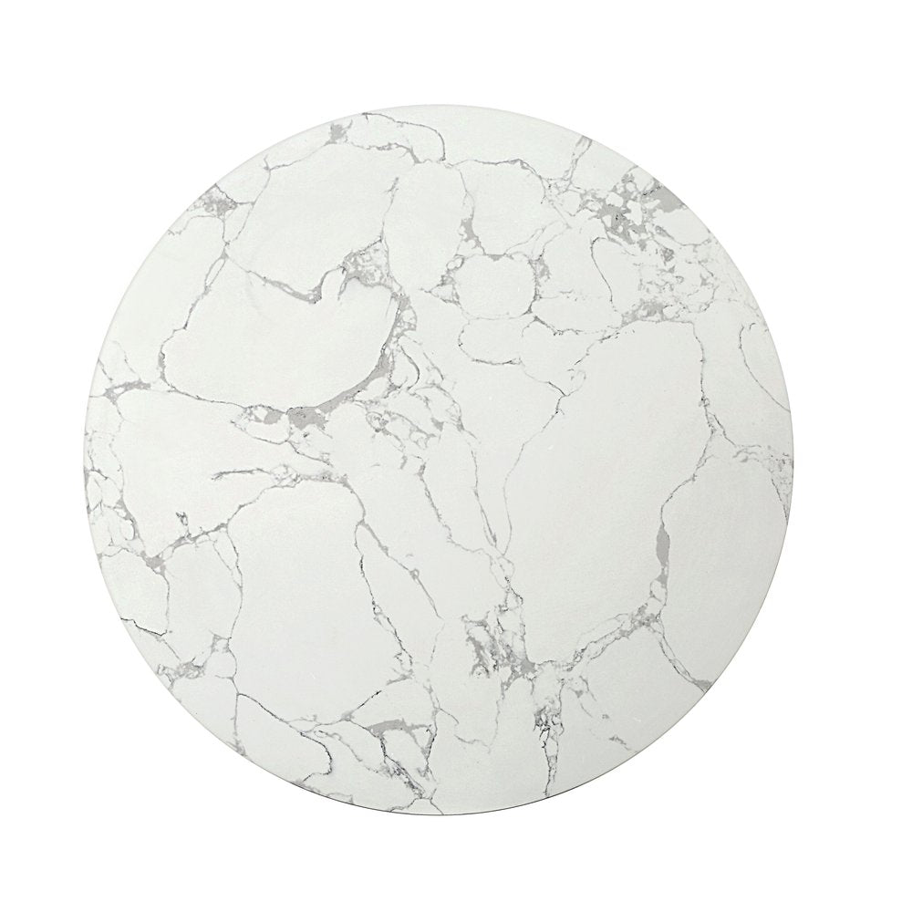 35" White Espresso and Gold Faux Marble Solid Wood and Steel Round Drum Coffee Table