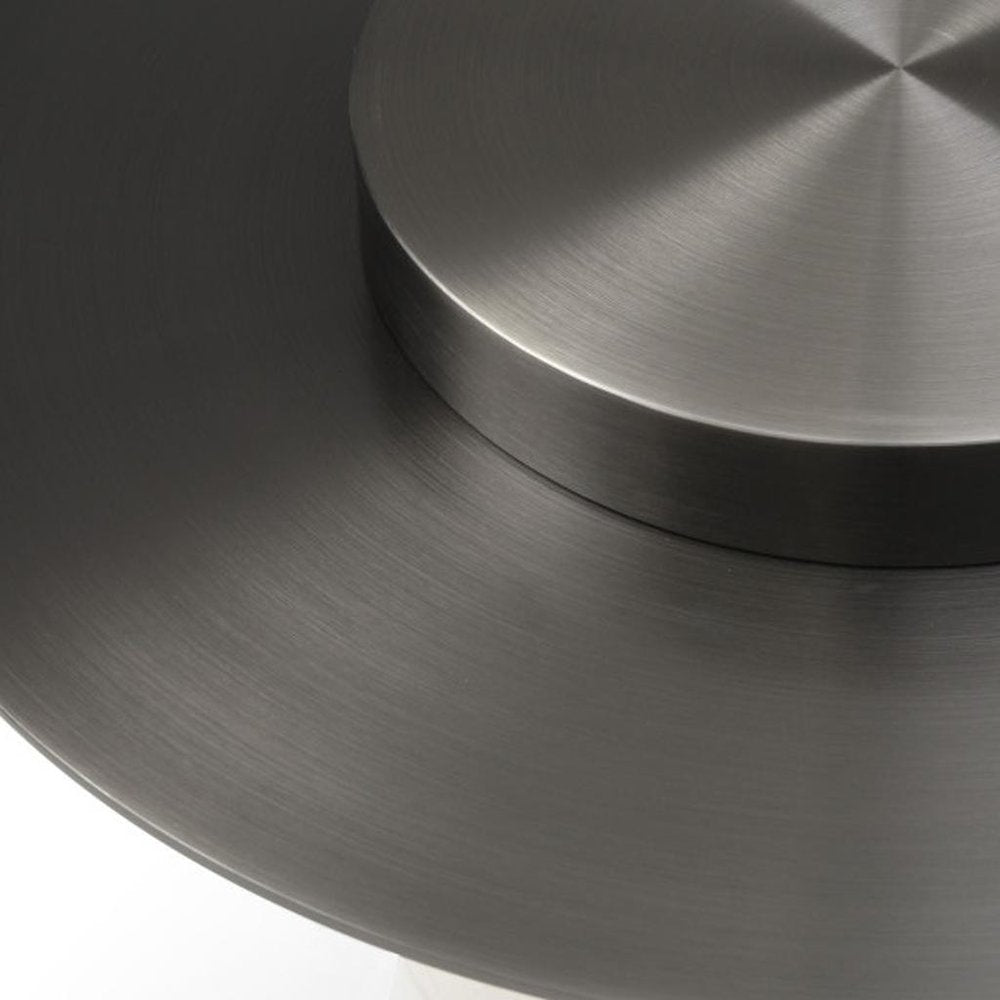 39" White Ceramic Tile and Wood Round Pedestal Coffee Table