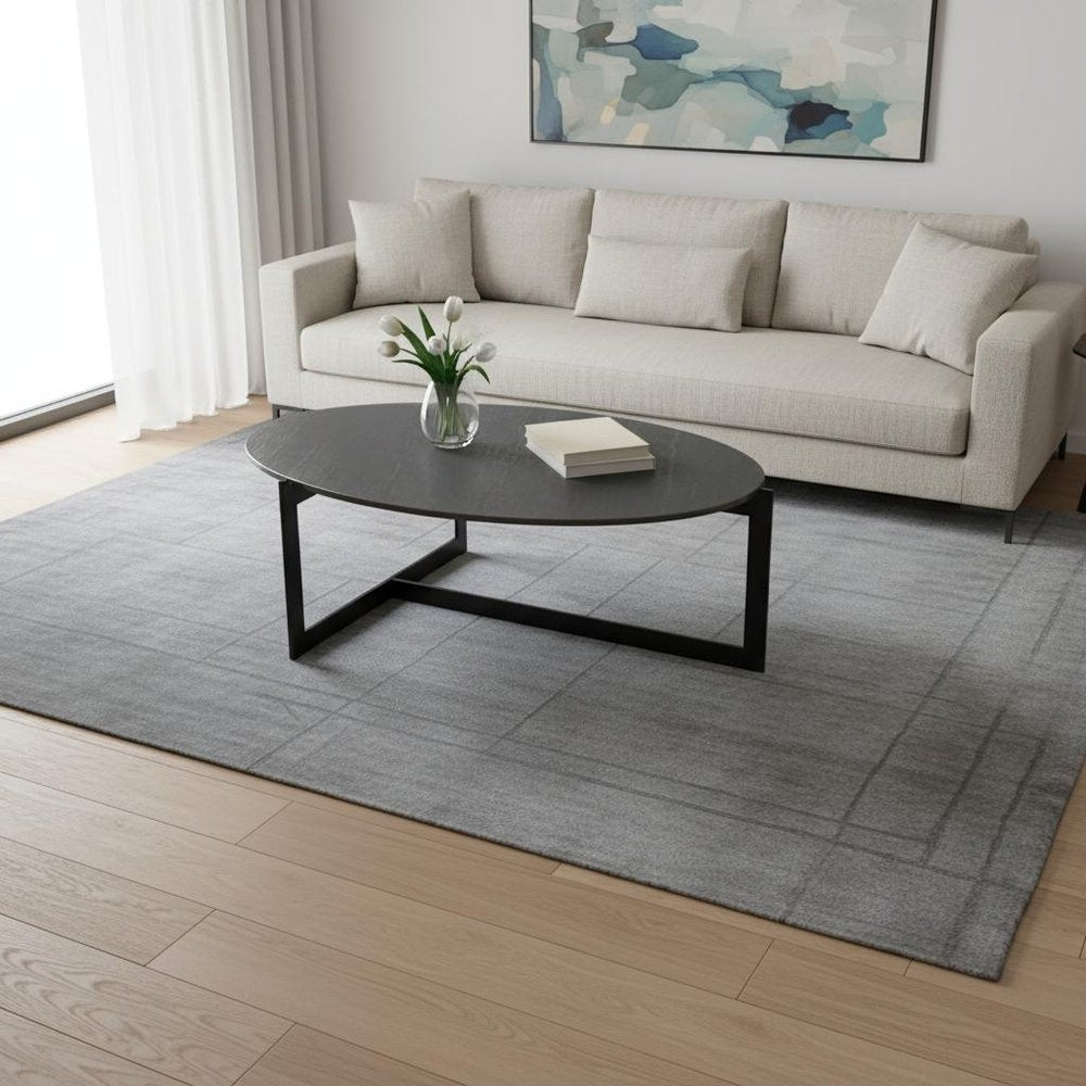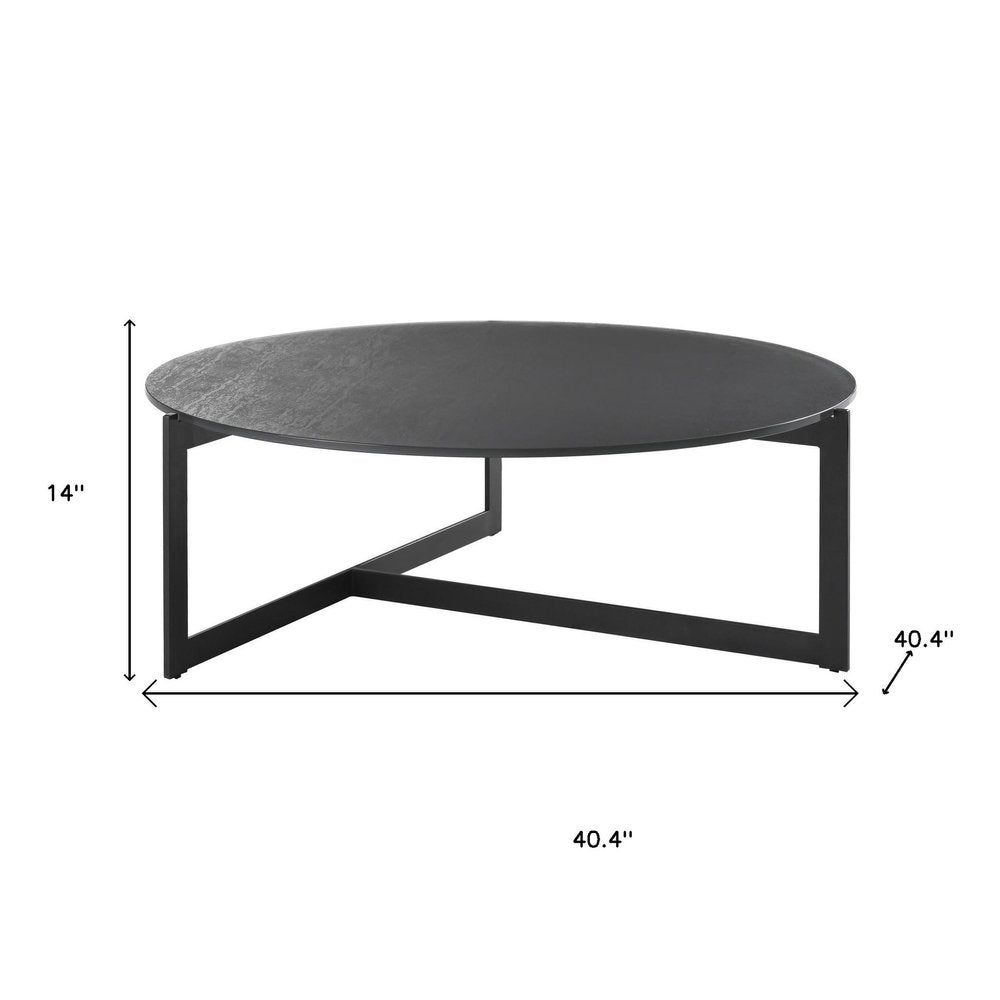 40" Gray and Black Glass and Iron Round Frame Coffee Table