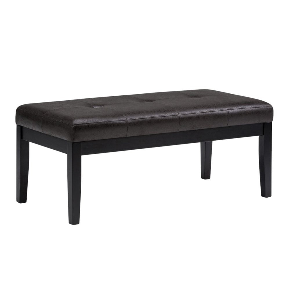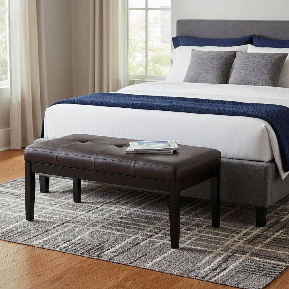 41" Black and Espresso Leather Ottoman