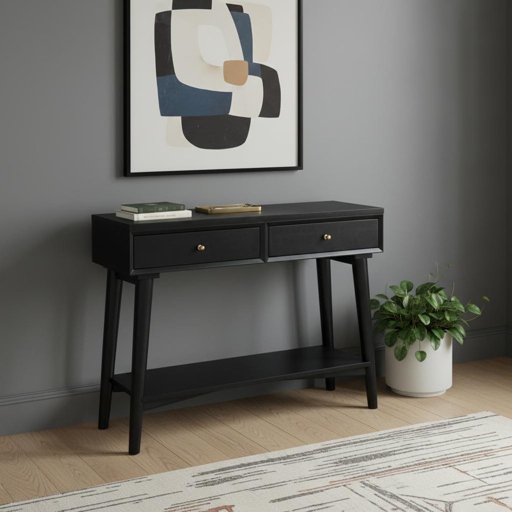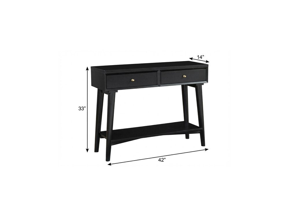 42" Black Floor Shelf Console Table With Shelves And Drawers
