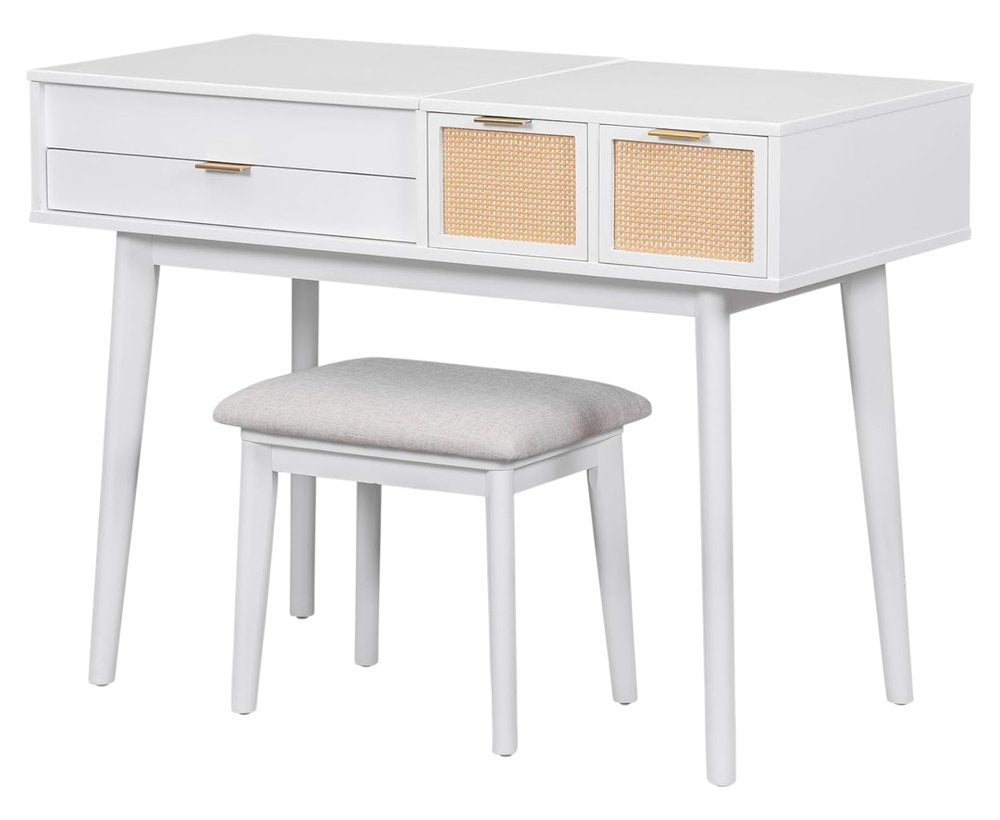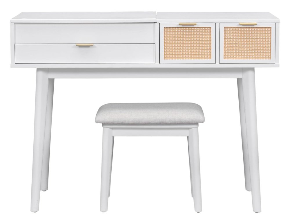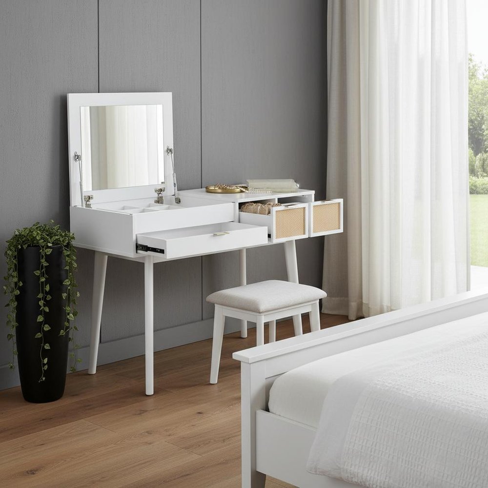Add personality to your bedroom style and a feeling of coziness with this 43-inch white wood four drawer dresser. This... Read more