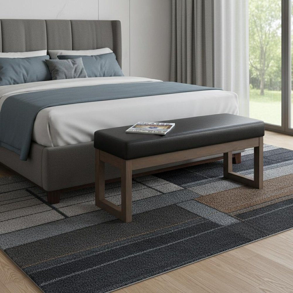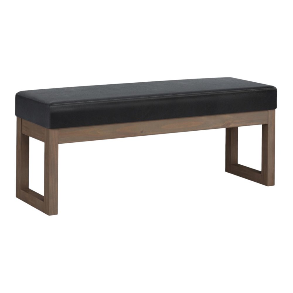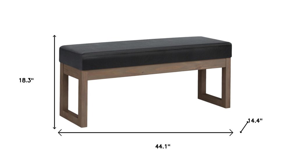 44" Black and Brown Leather Ottoman