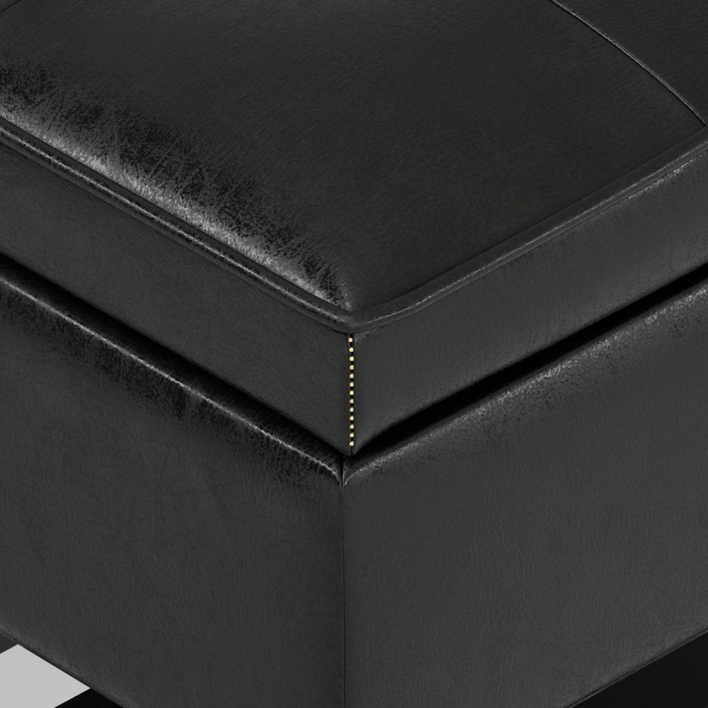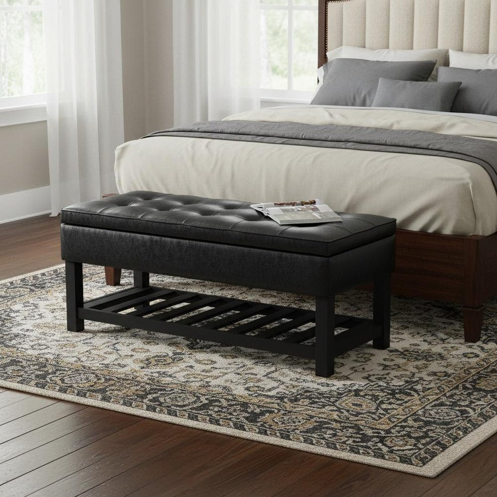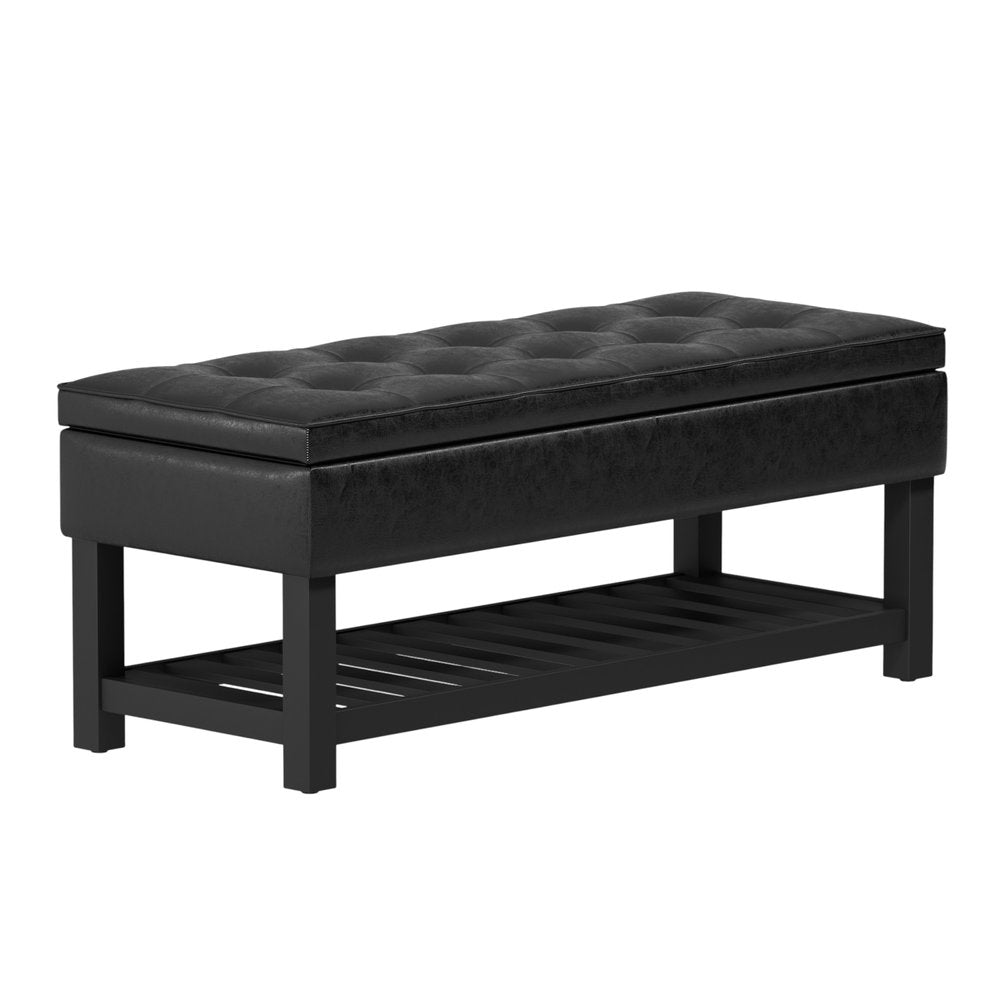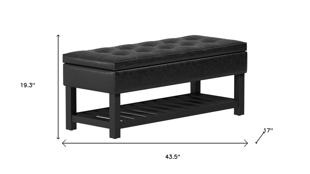 44" Black and Dark Brown Leather Ottoman With Storage