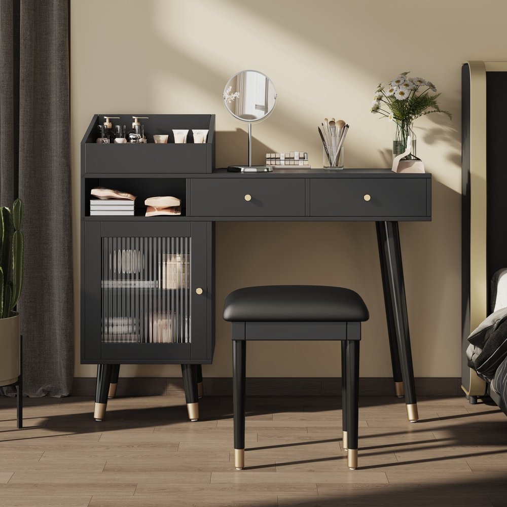 44" Black Wood Two Drawer Dresser