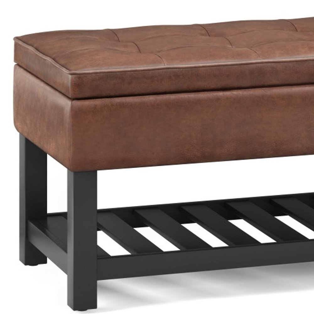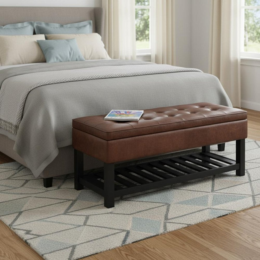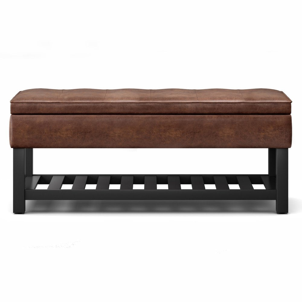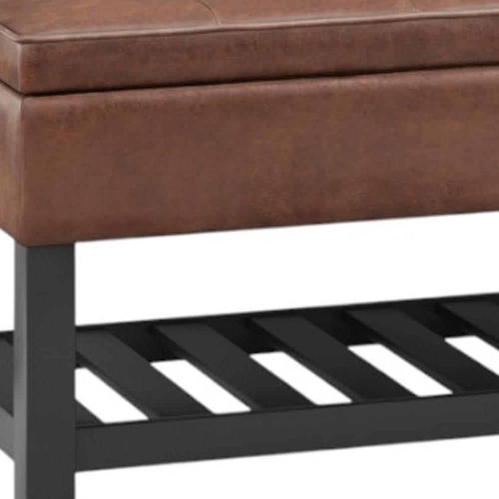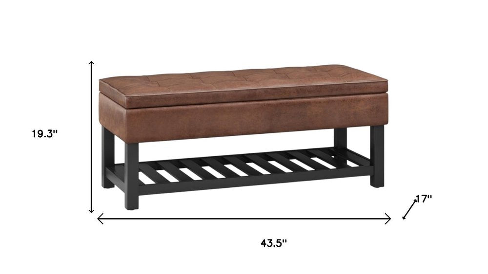 44" Brown and Dark Brown Leather Ottoman With Storage